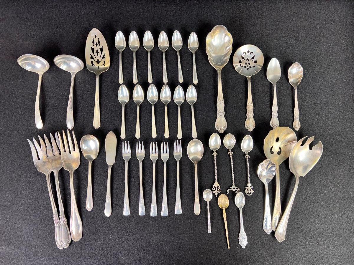 Lot contains 38 pieces of Viceroy (Marianne pattern), Rodger Bros (Adoration pattern), Heritage silver plate (Camellia pattern)