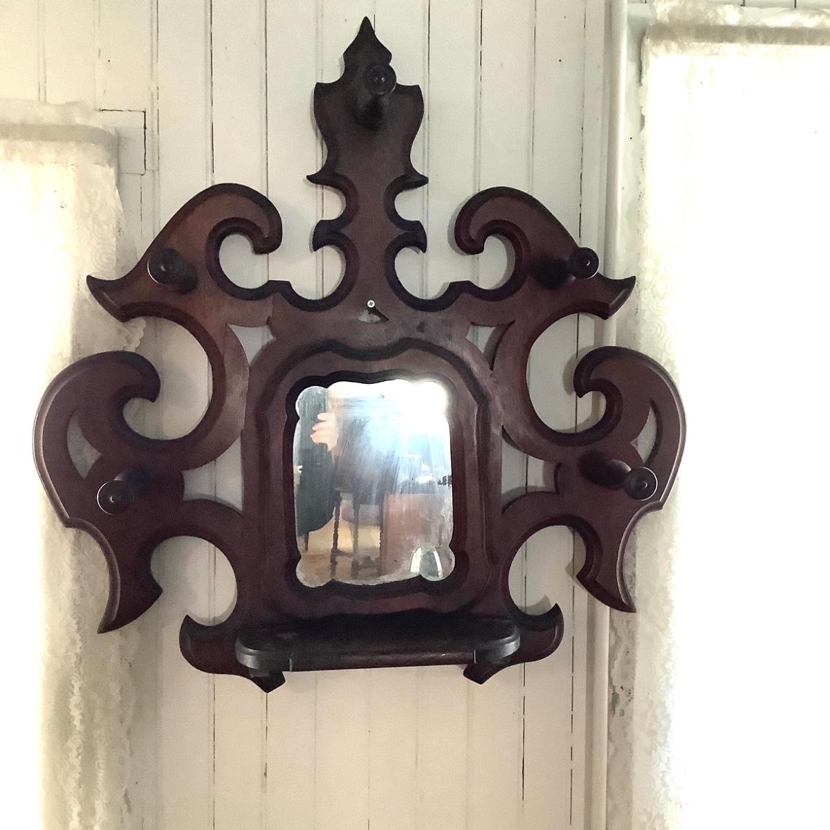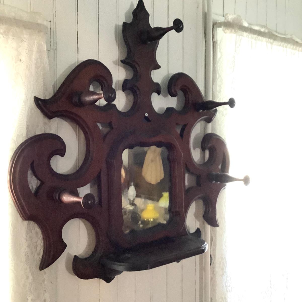 359 Vintage Victorian Walnut Mirrored Wall Hat Rack