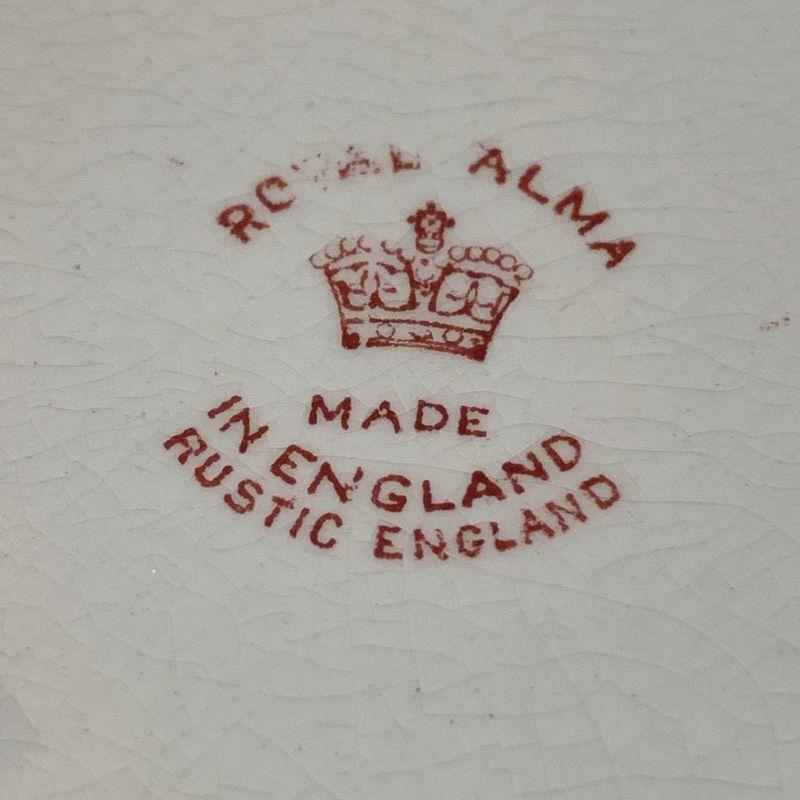 #36   ANTIQUE PORCELAIN BOX ENGLISH RED & WHITE TRANSFER WARE "RUSTIC ENGLAND"