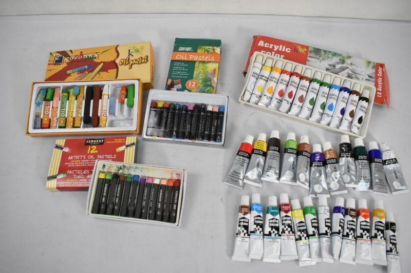 36 Artist Oil Pastels & 35 Small Tubes of Acrylic Paints