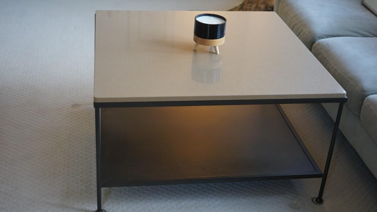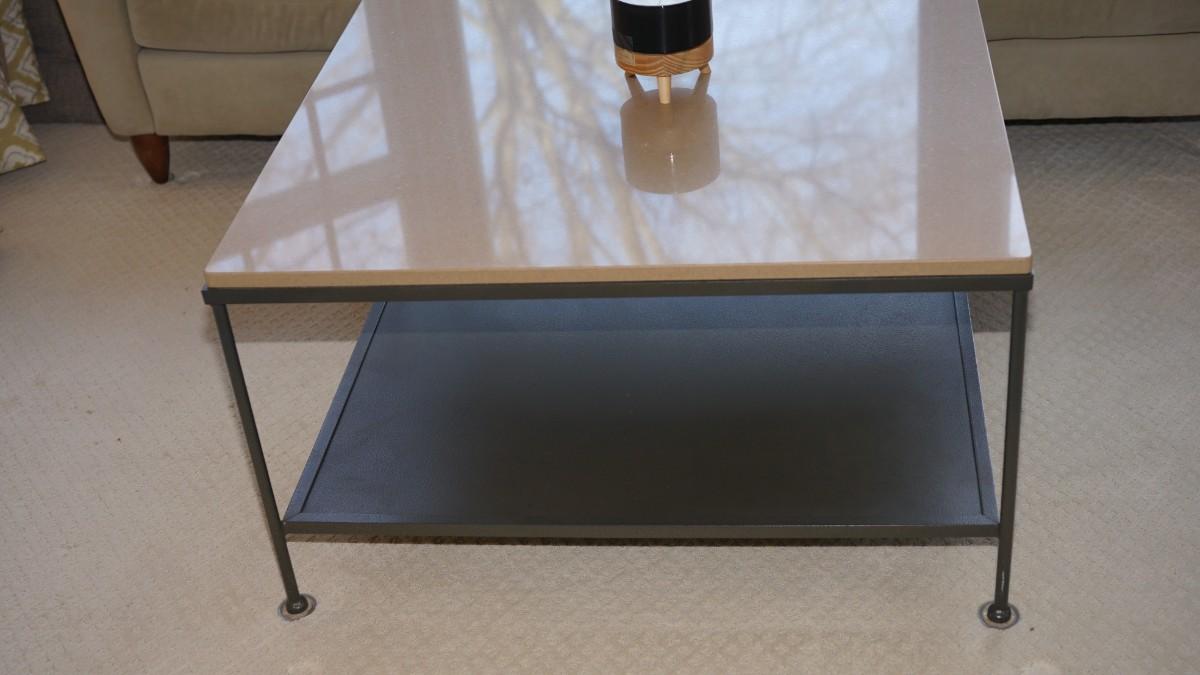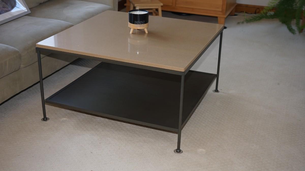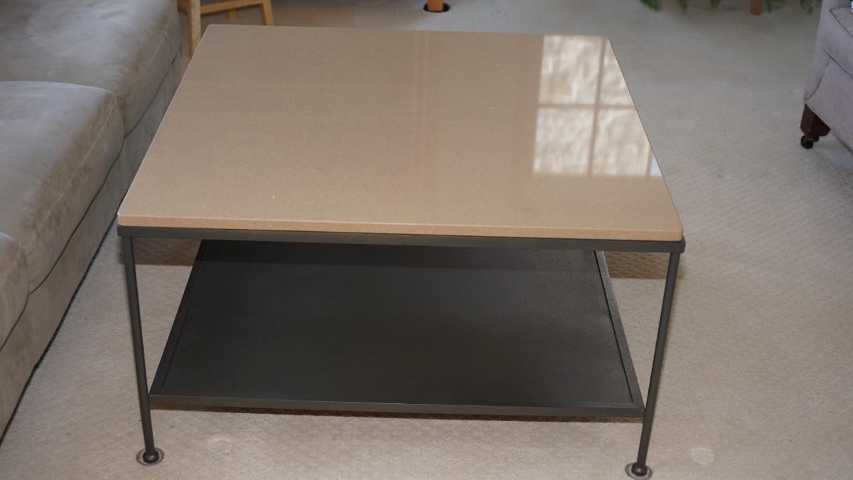 36" by 36" Excellent style onyx top coffee table w/ quality black wrought metal base