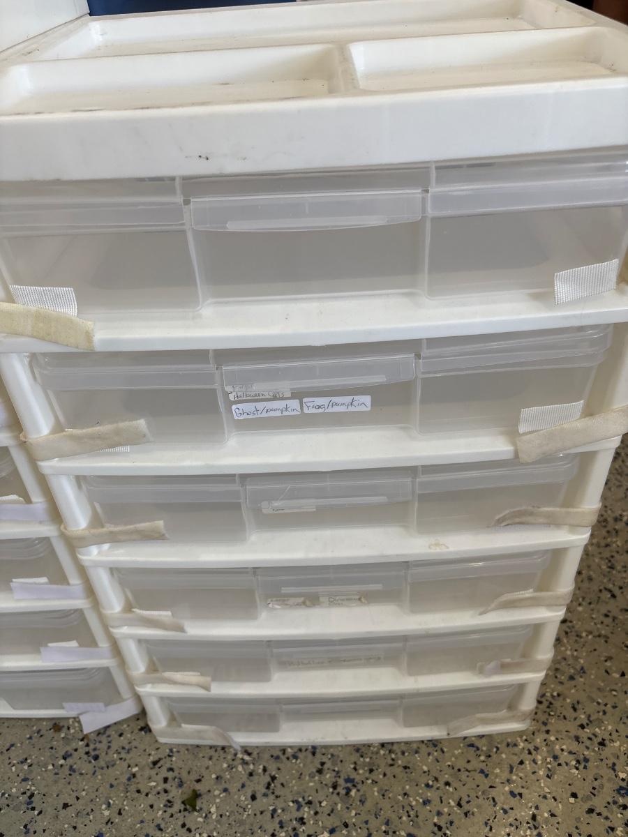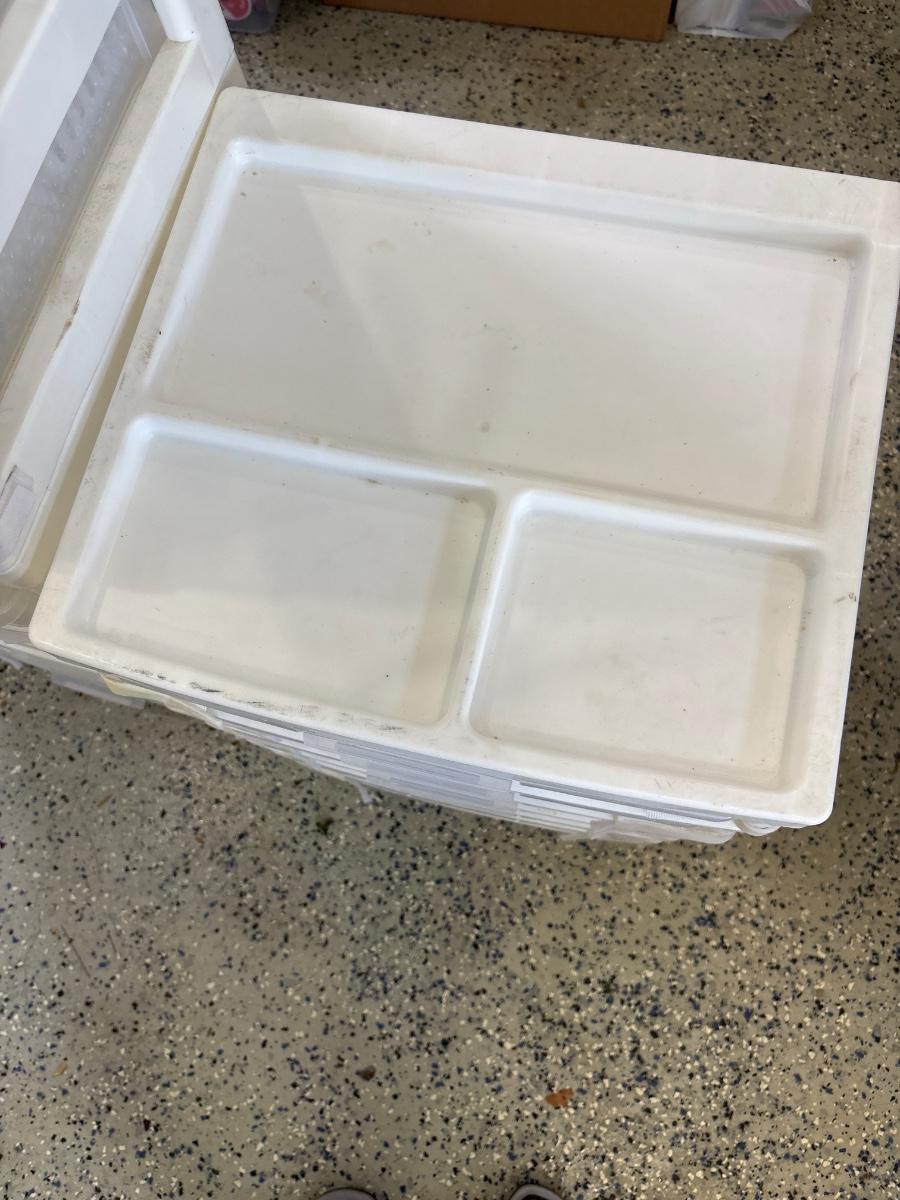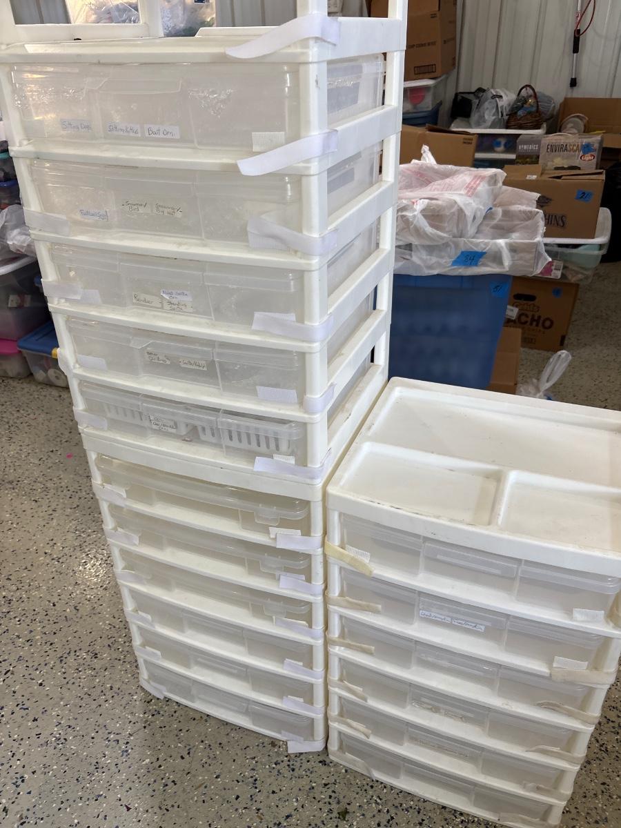 Three storage totes for crafting or other use measuring 25“ x 16“ x 14“