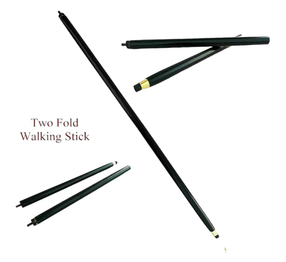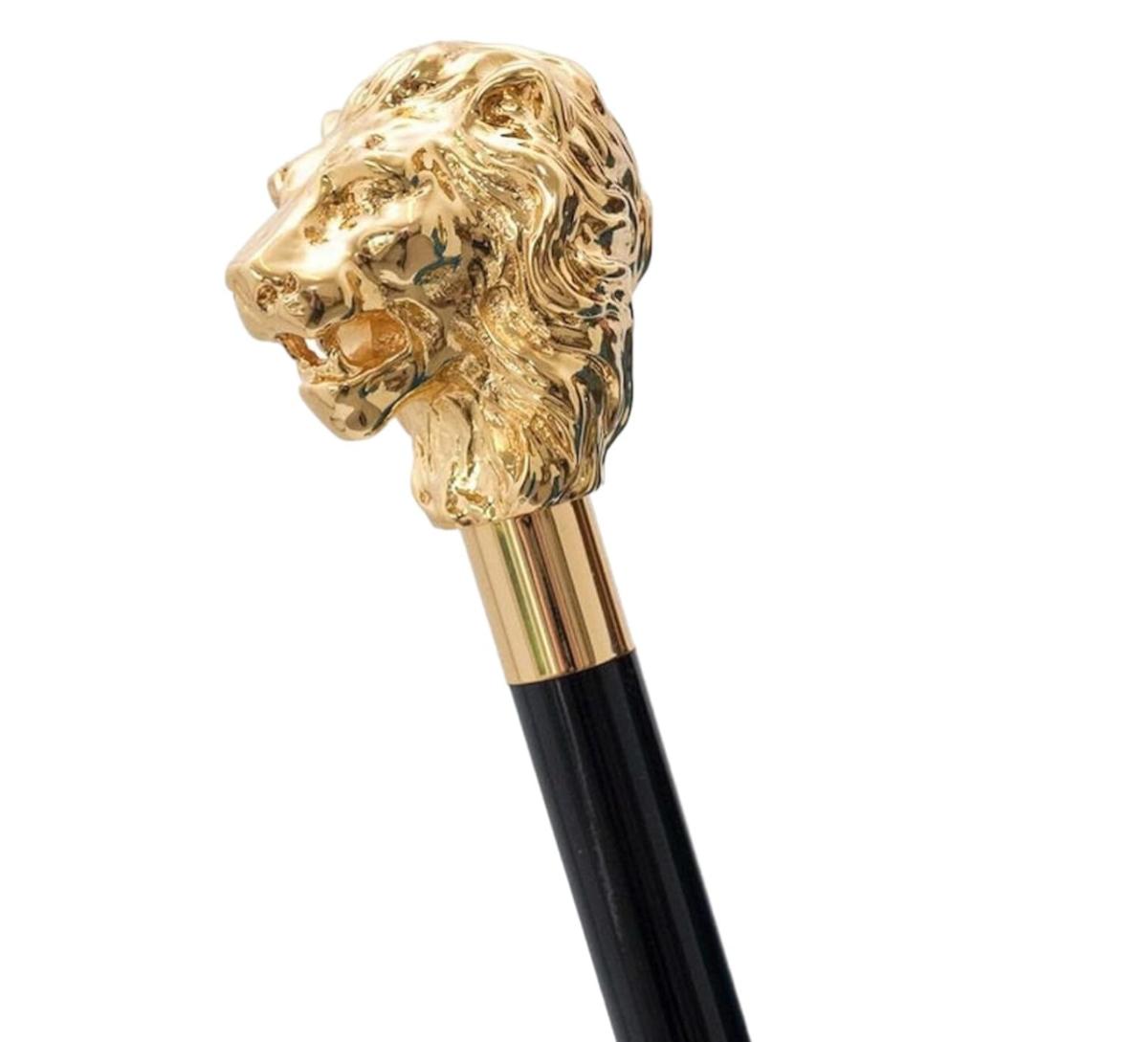 36" Golden Lion Head Two-Fold Walking Stick - Wooden Walking Stick Foldable Cane