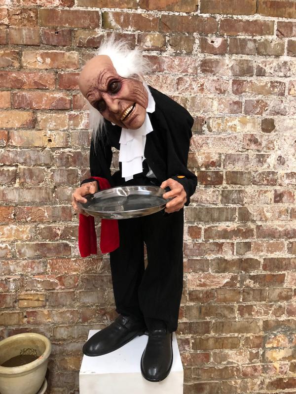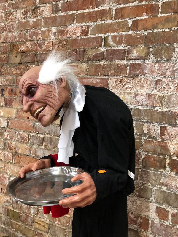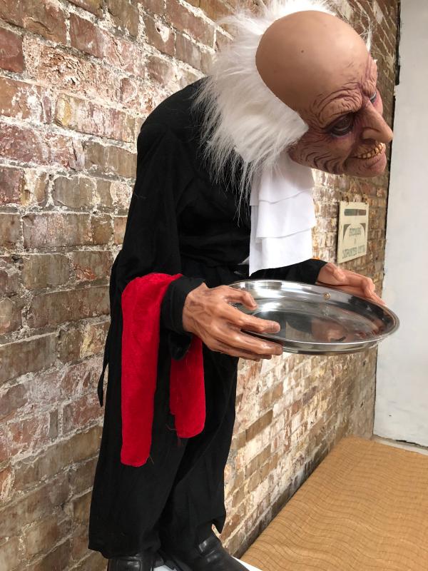 Here is a 36" tall animated Halloween figure...this scary Lurch type Butler is battery operated(untested)...Lighted...