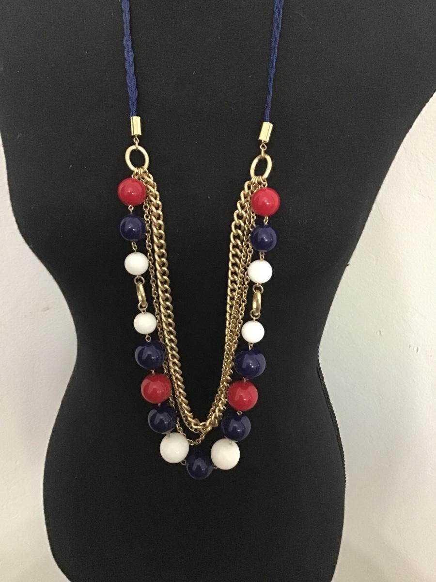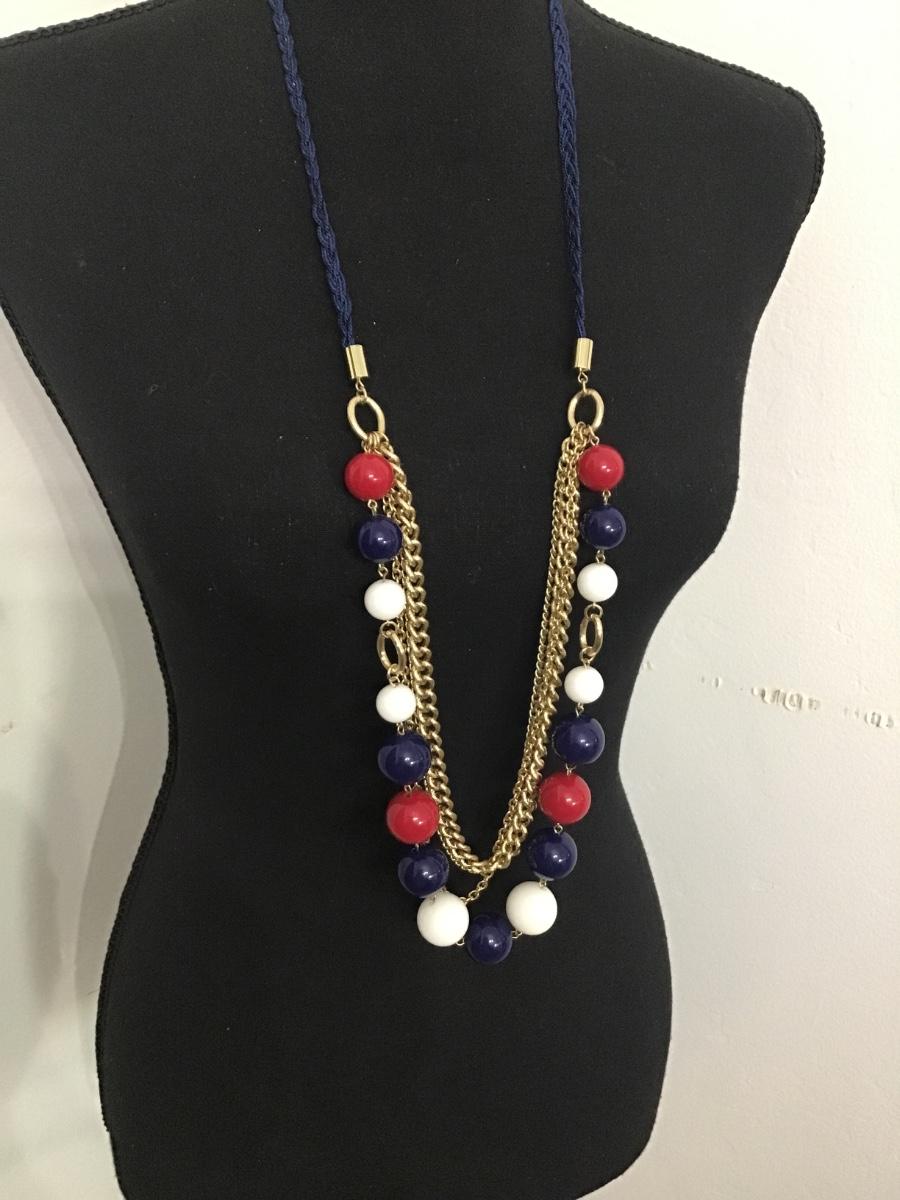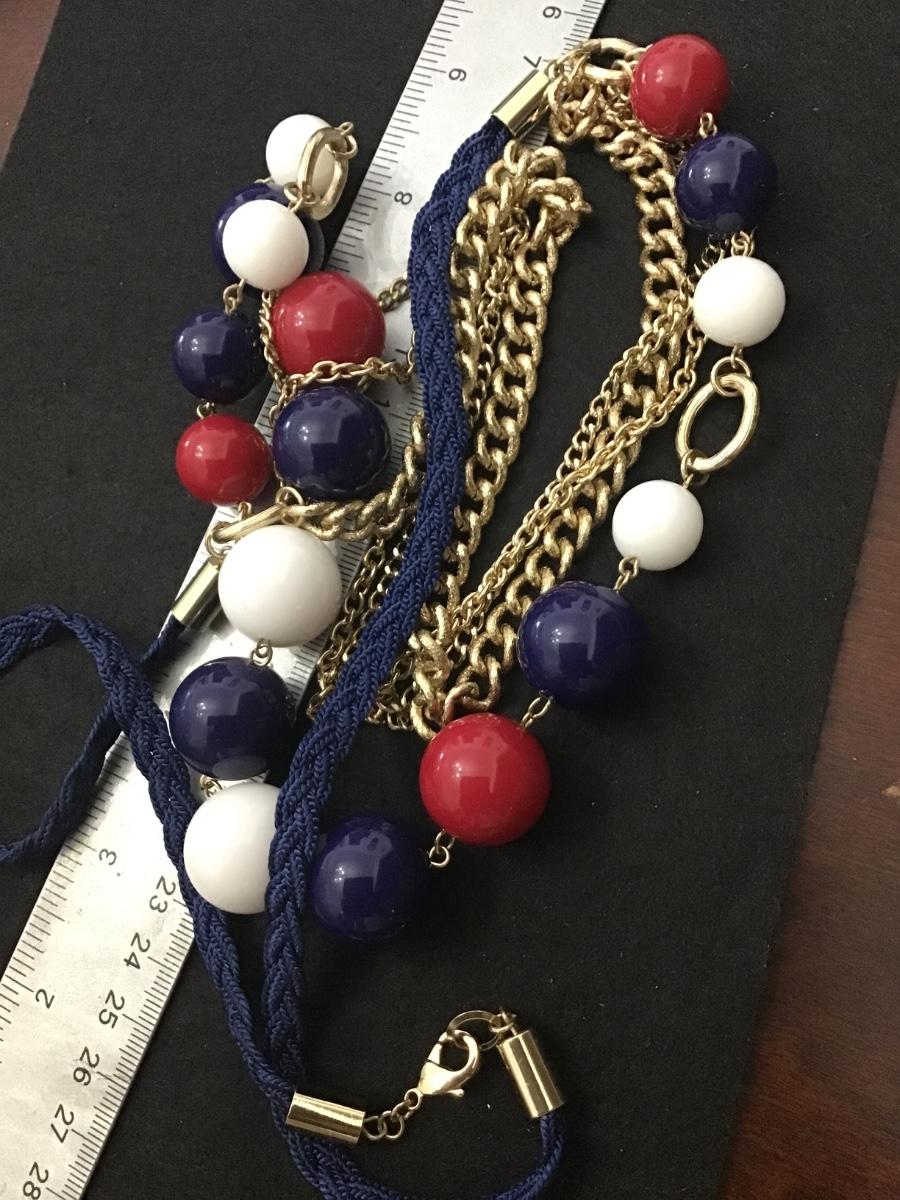 36 inch Red White Blue Vintage Gold Tone Statement