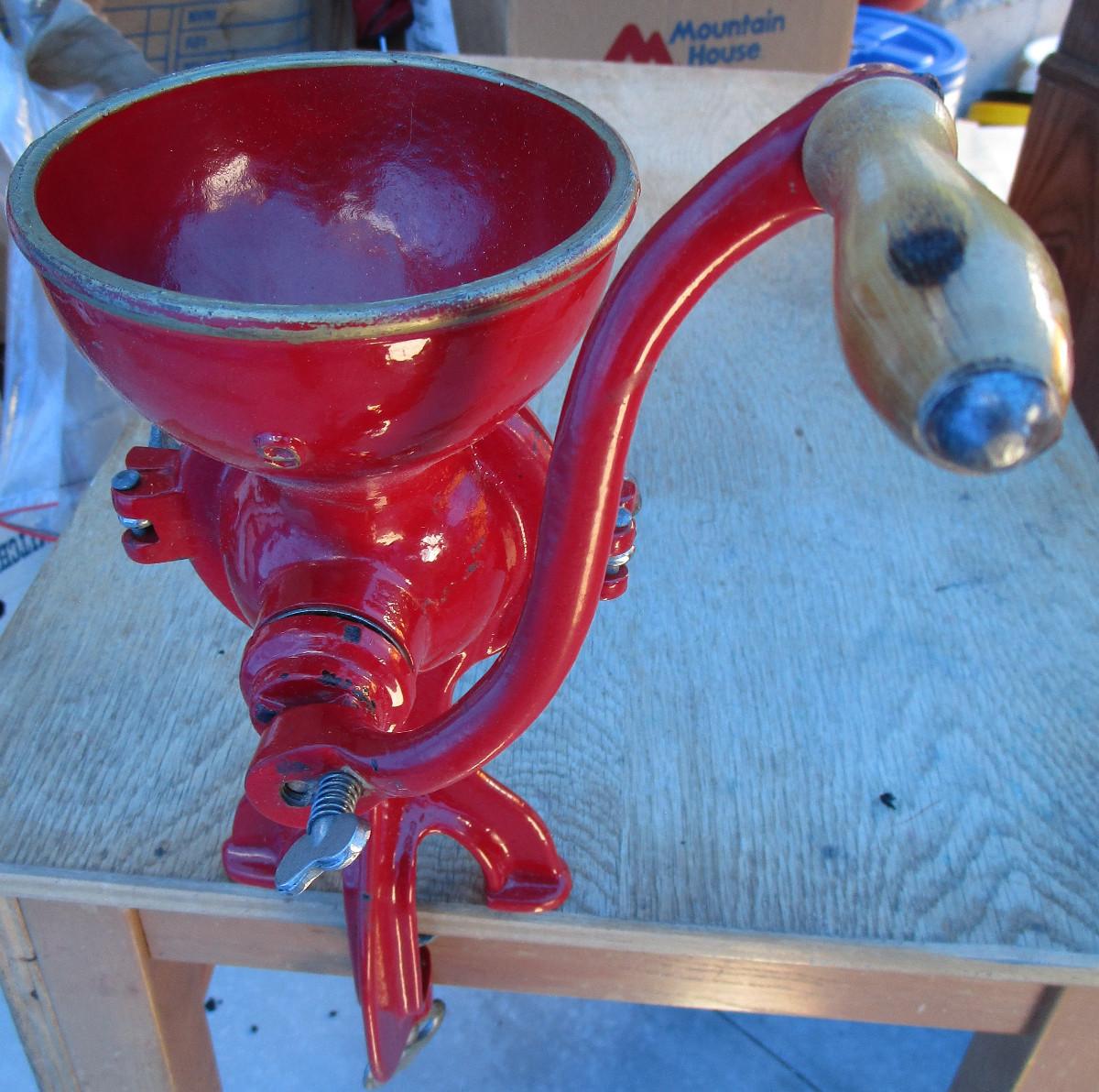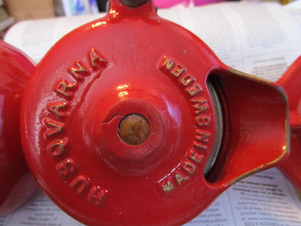 #36 Antique Husqvarna Cast Iron Coffee Grinder Mill #9 Red
