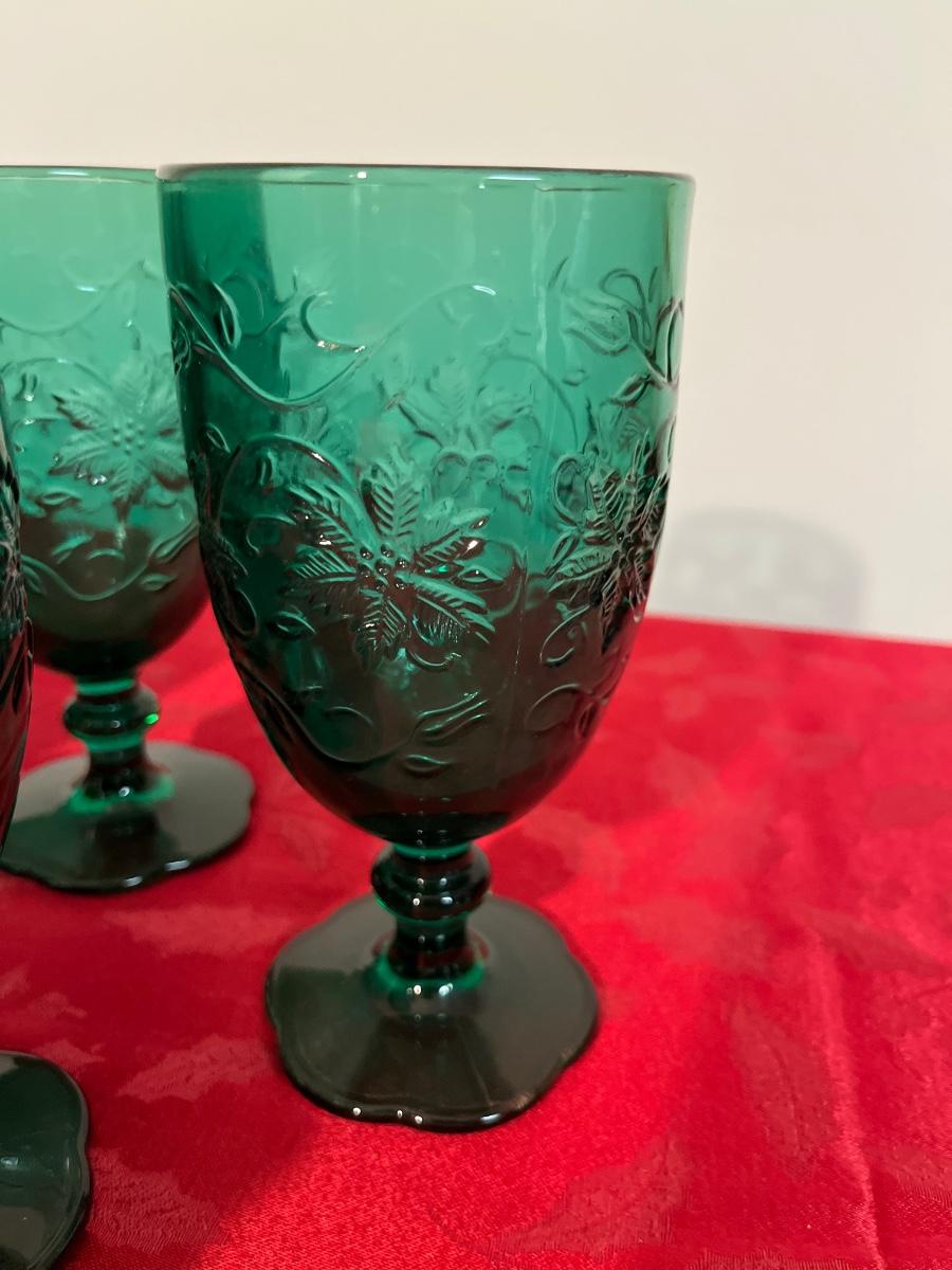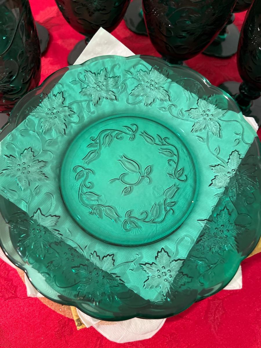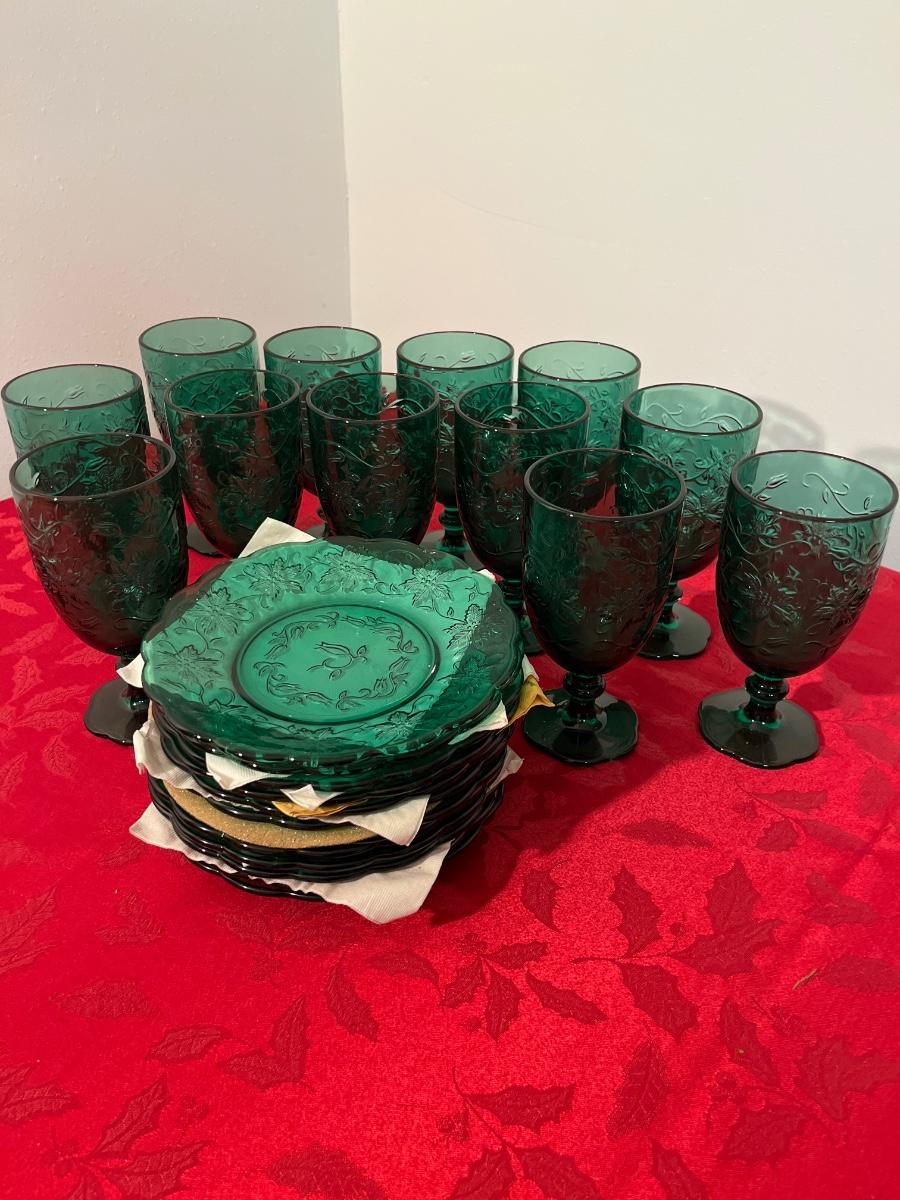 36- Set of 12 green glass dessert plates & glasses