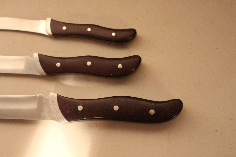 Vintage Buck Set 3 Kitchen Butcher Brand USA Knives Set Carving Wood Handles