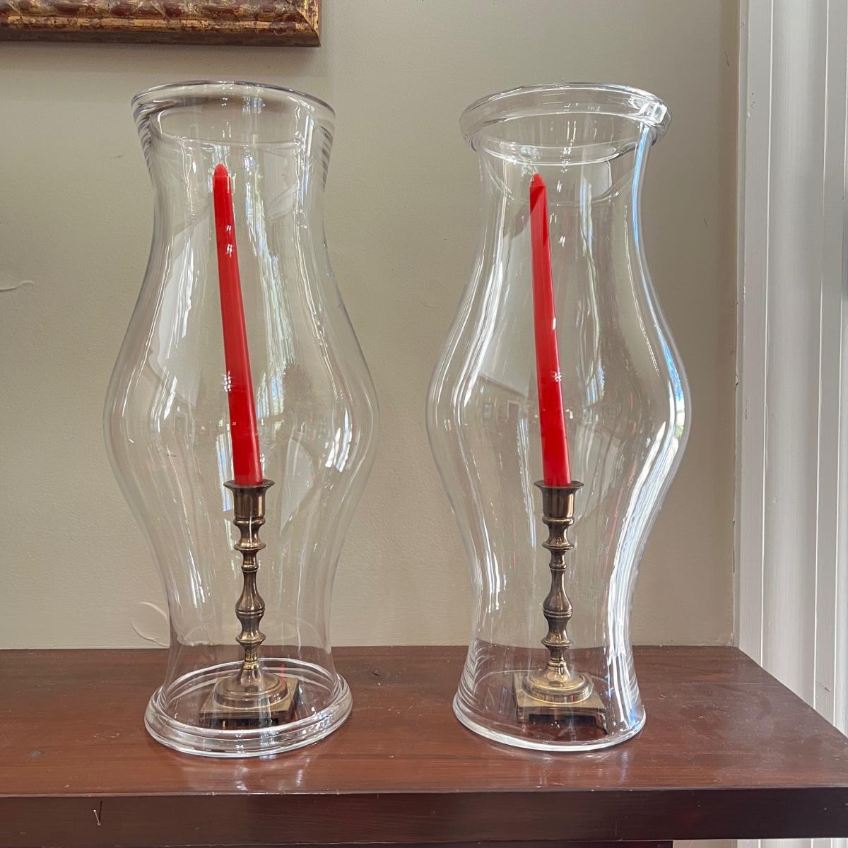 D540 Large Blenko Handblown Williamsburg Hurricane Globes with Candle Holders