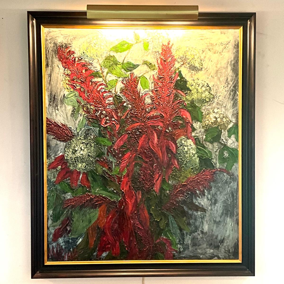 Beautiful Acrylic Textured Art byAndree Vezina , born in Montreal in 1952 Andree live and works in Quebec. Named artist of the year by the Pratt & Whitney Company. Her paintings are found in many corporate and public collections