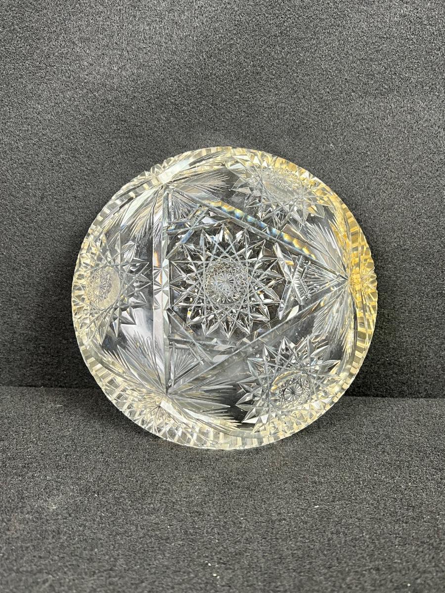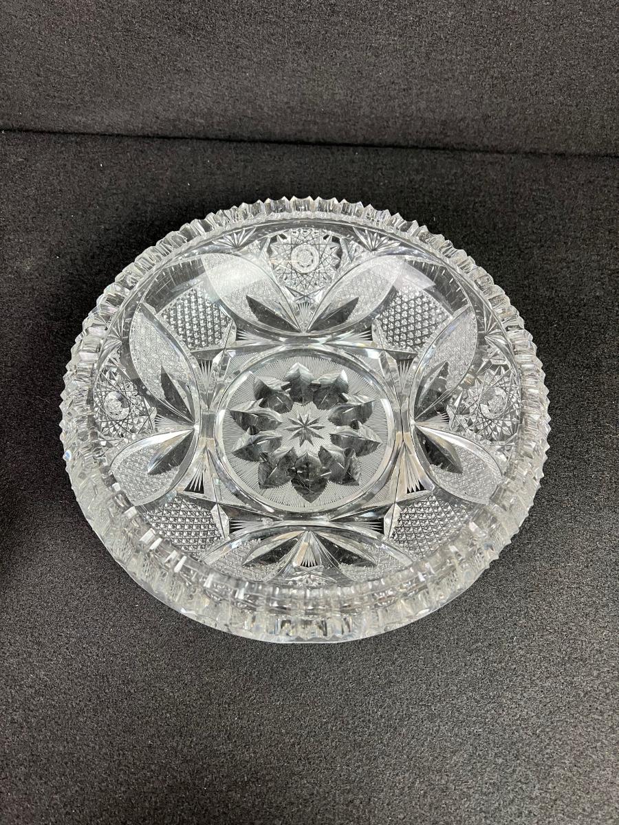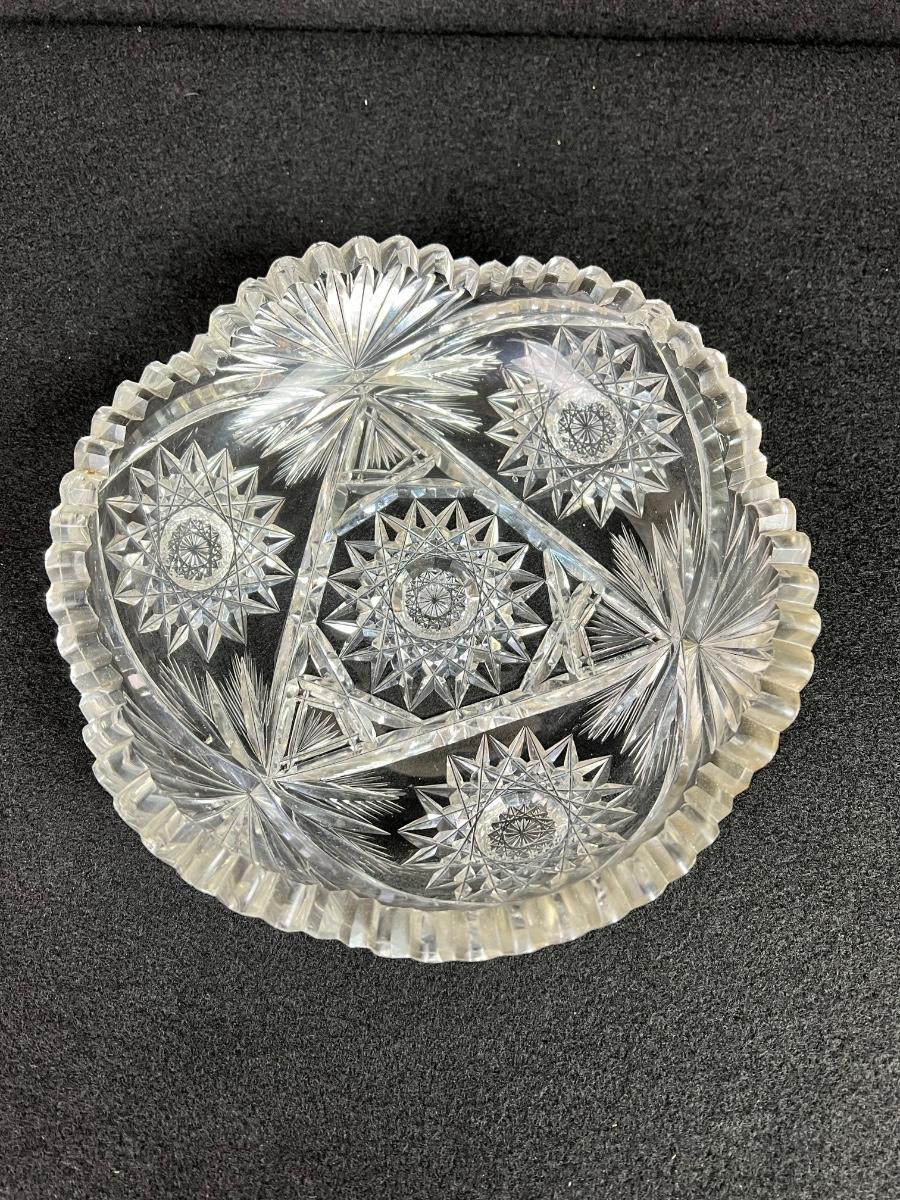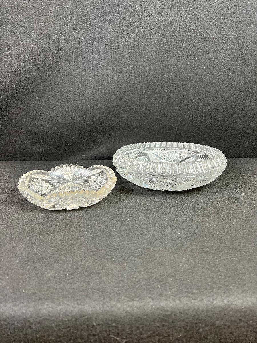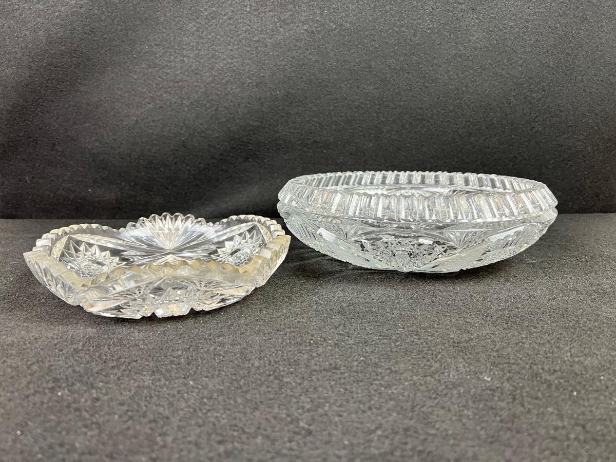 Two cut crystal bowls measuring 10 1/2” & 8” round.