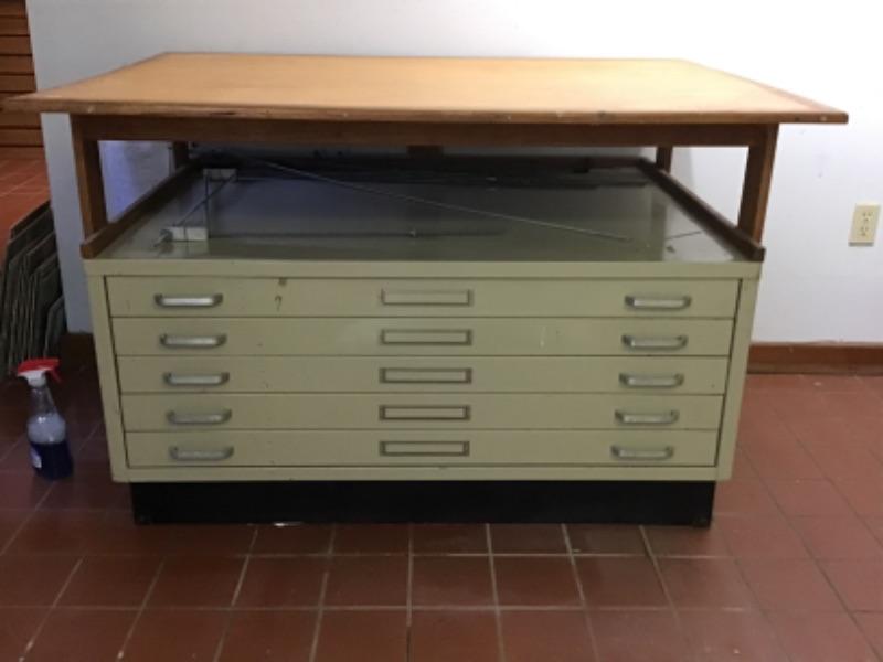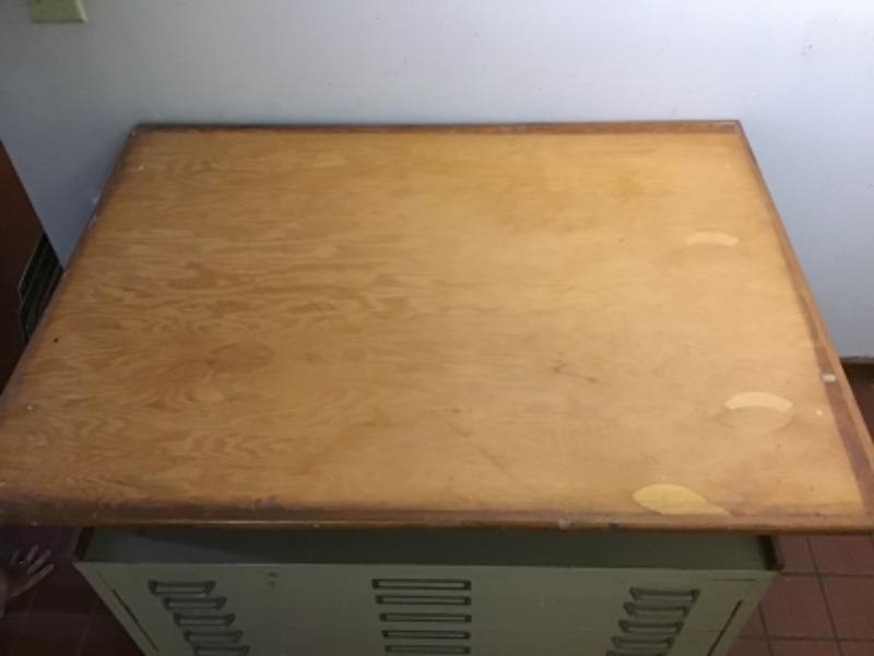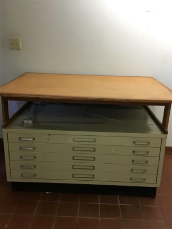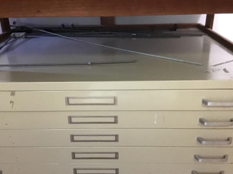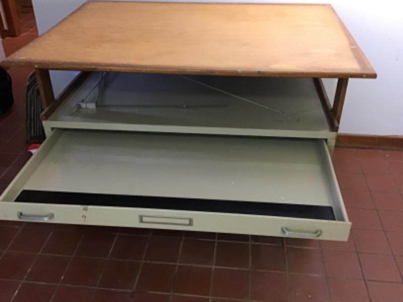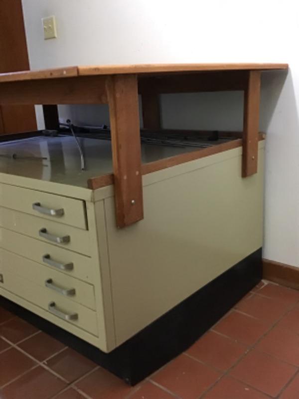 A table to cut mattes for art pieces, and filing drawers to keep it organized and flat.