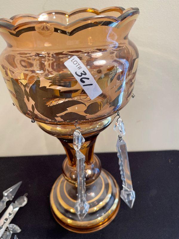 #361 Rose Colored with Gold Overlay Glass Compote