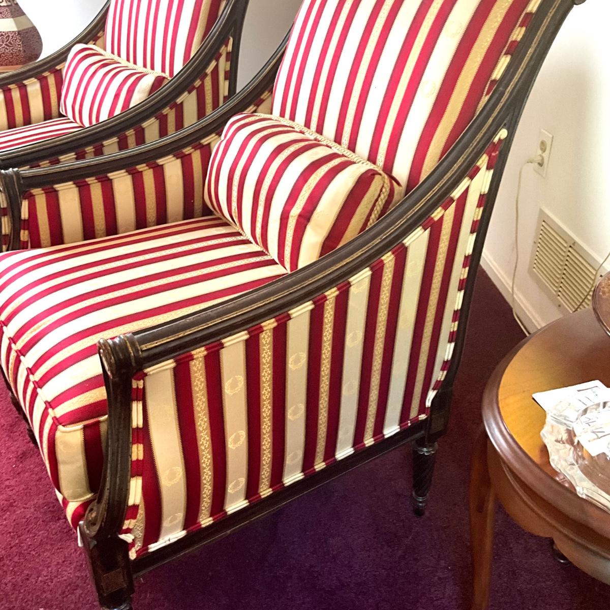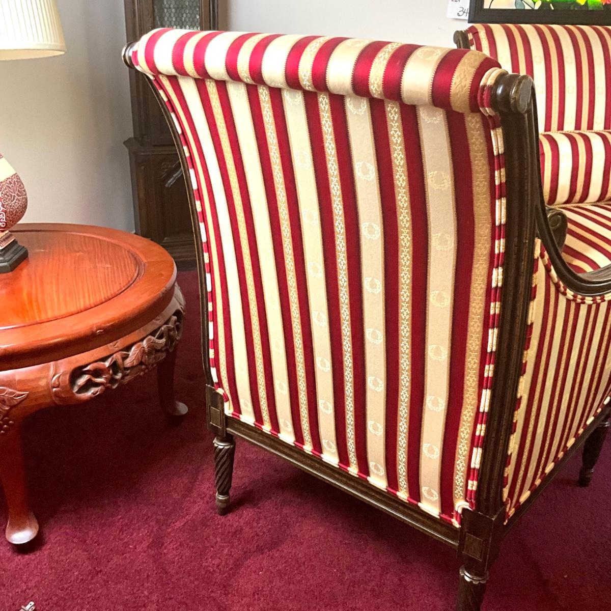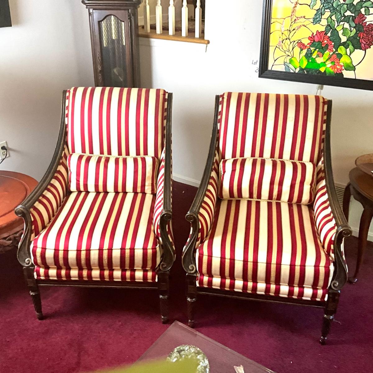 364 Pair of WESLEY HALL Upholstered Striped Arm Chairs