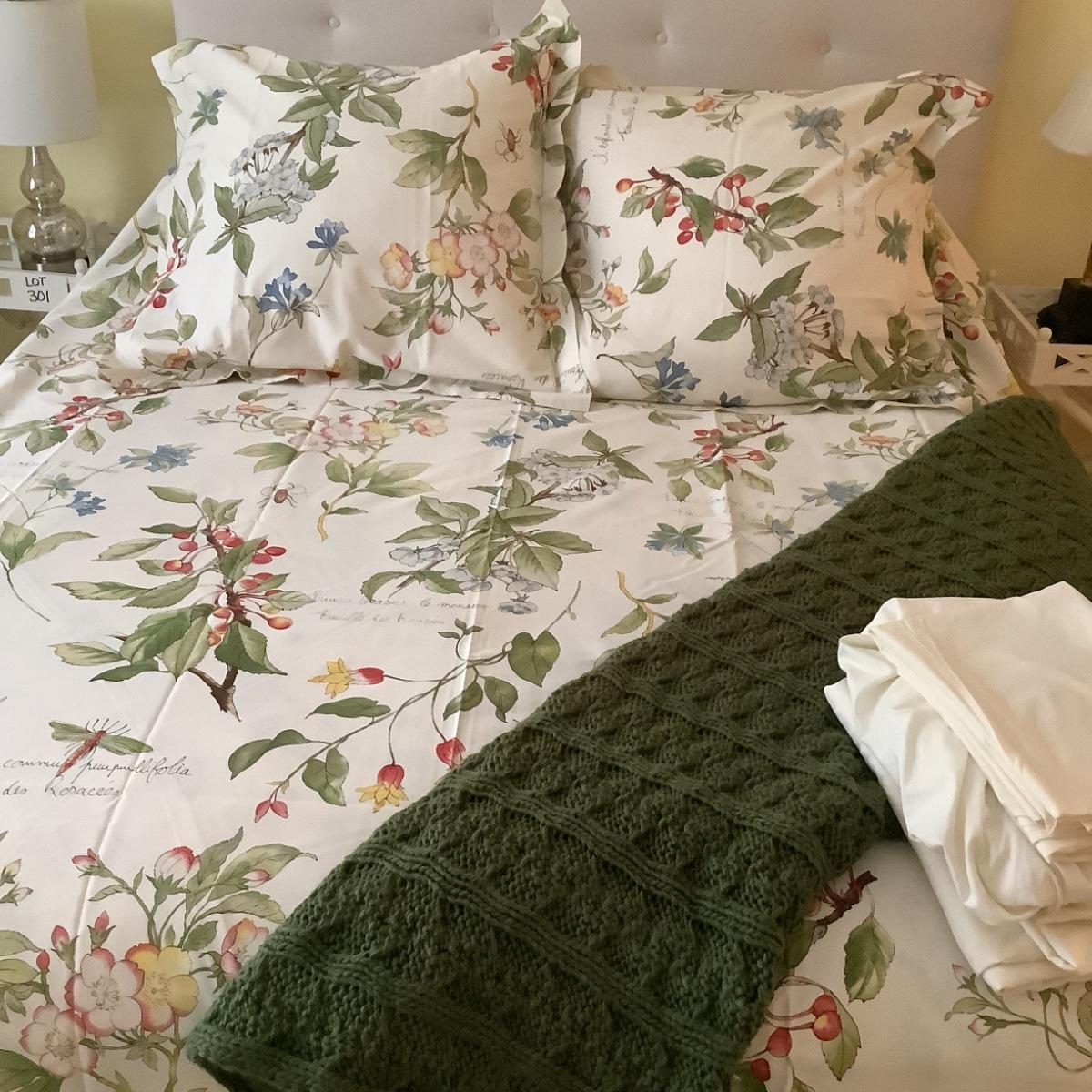 364 Pottery Barn "French Cherry Blossom" Queen/Full Duvet Cover 2x Euro Pillow Covers