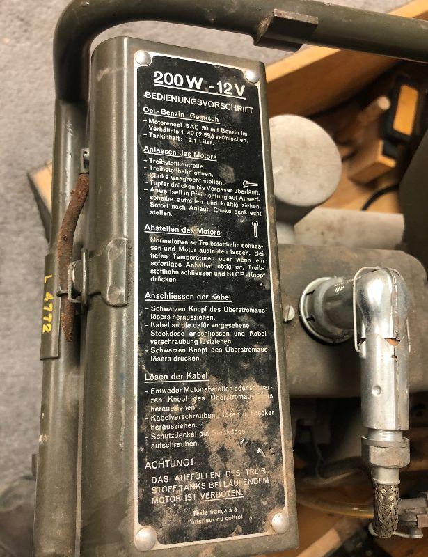 #364 Vintage SWISS Military Generator Light Plant 12vdc