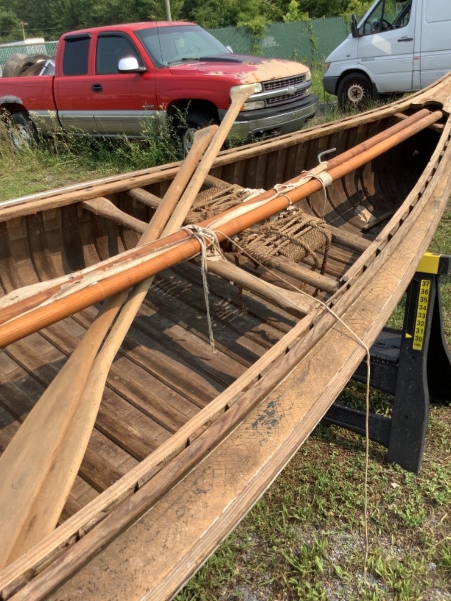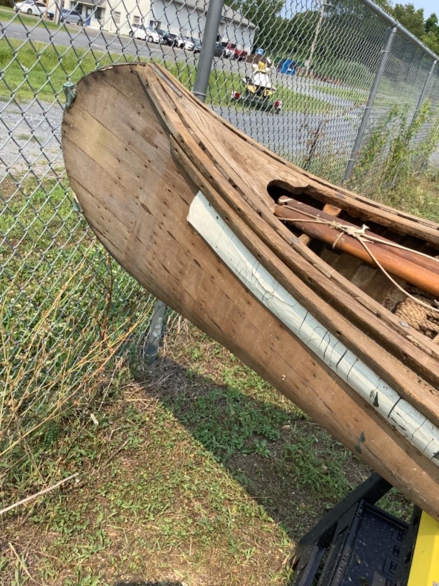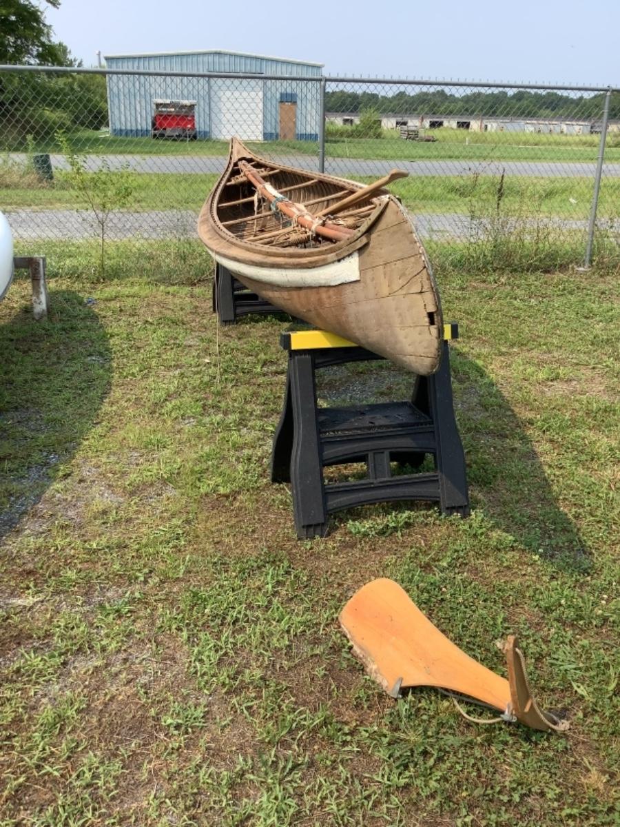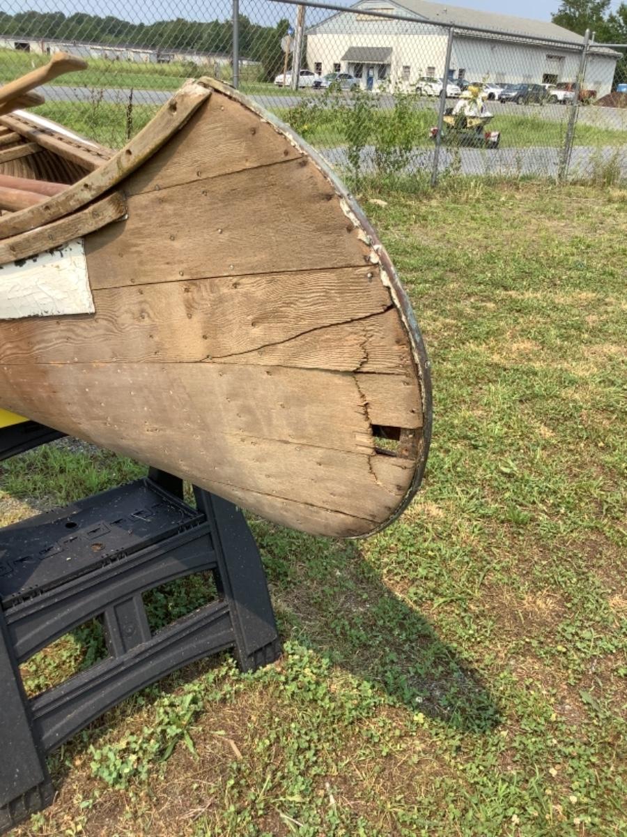This canoe has a little damage on the front and side (please see pics) can be used for decor.