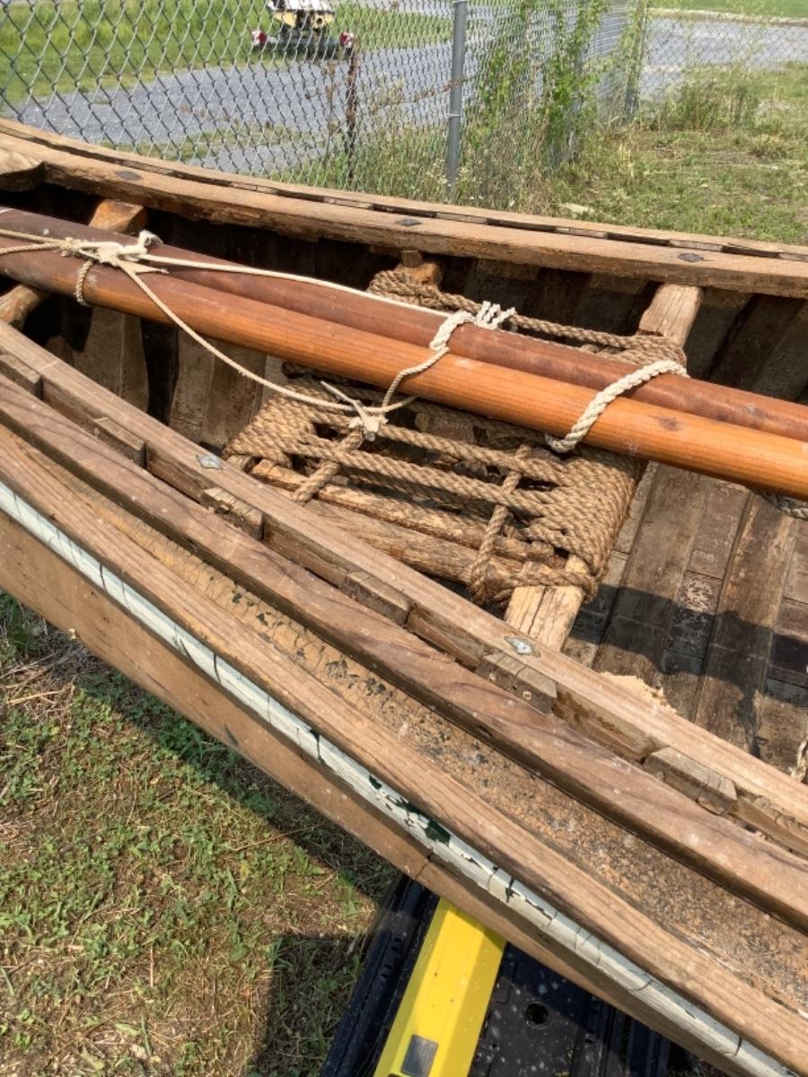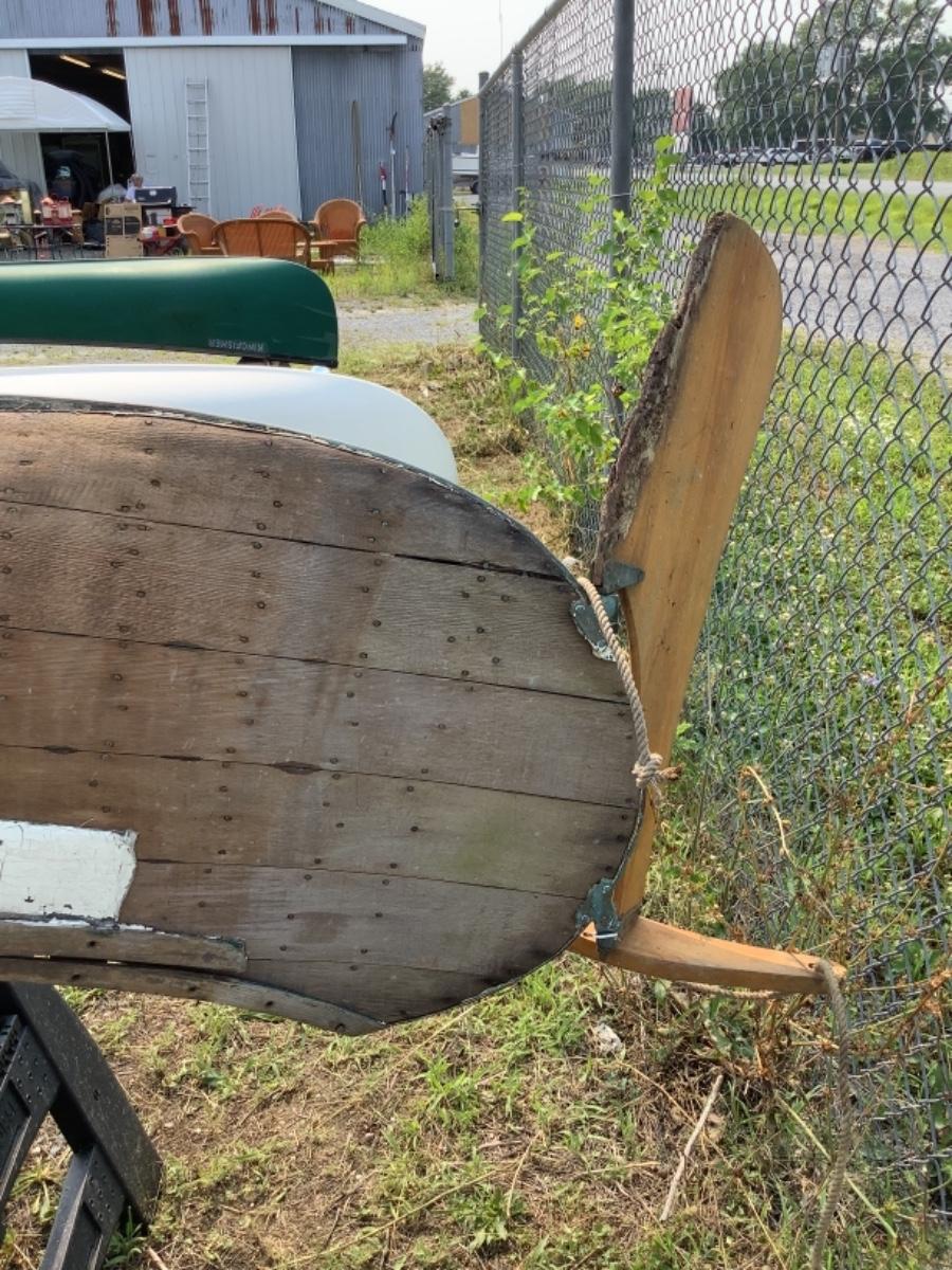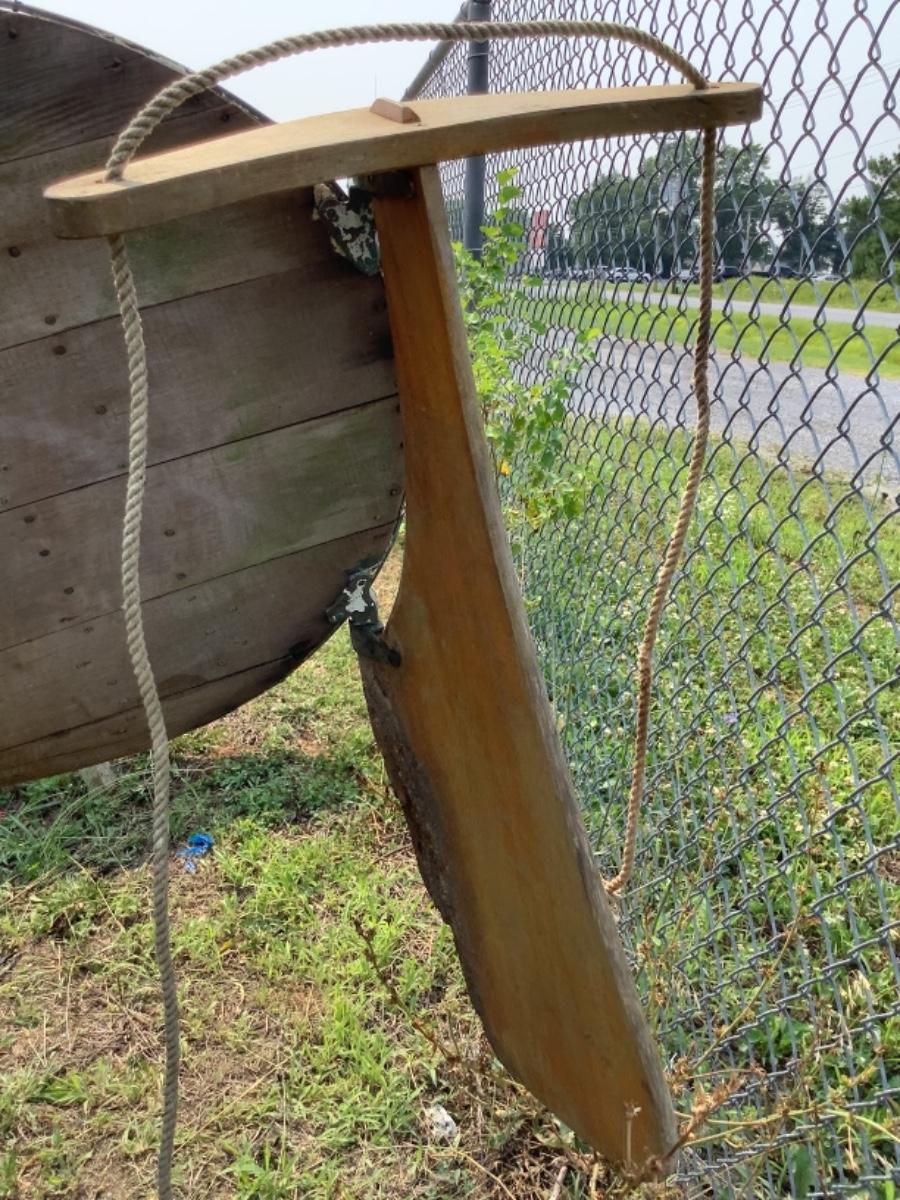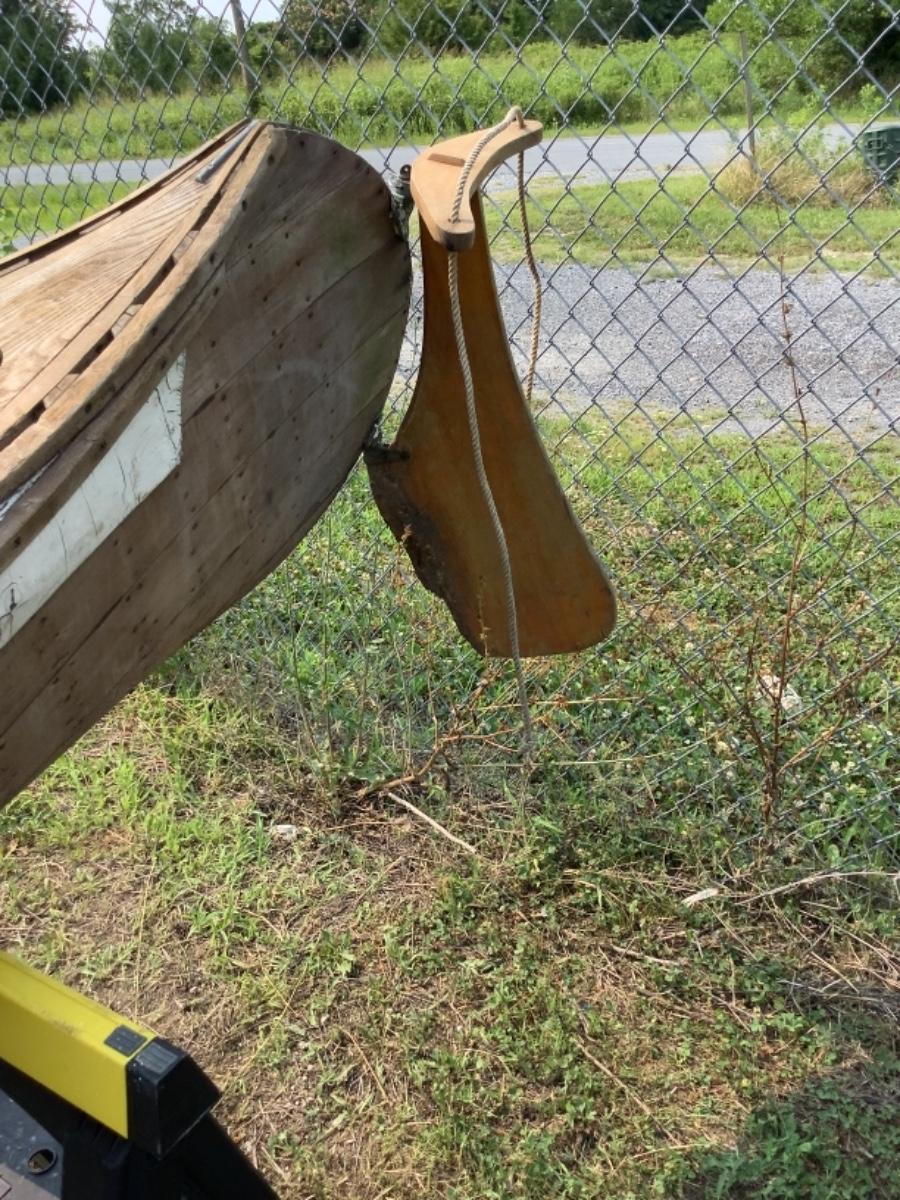 Wooden sail (canvas missing) with wooden rudder with some damage