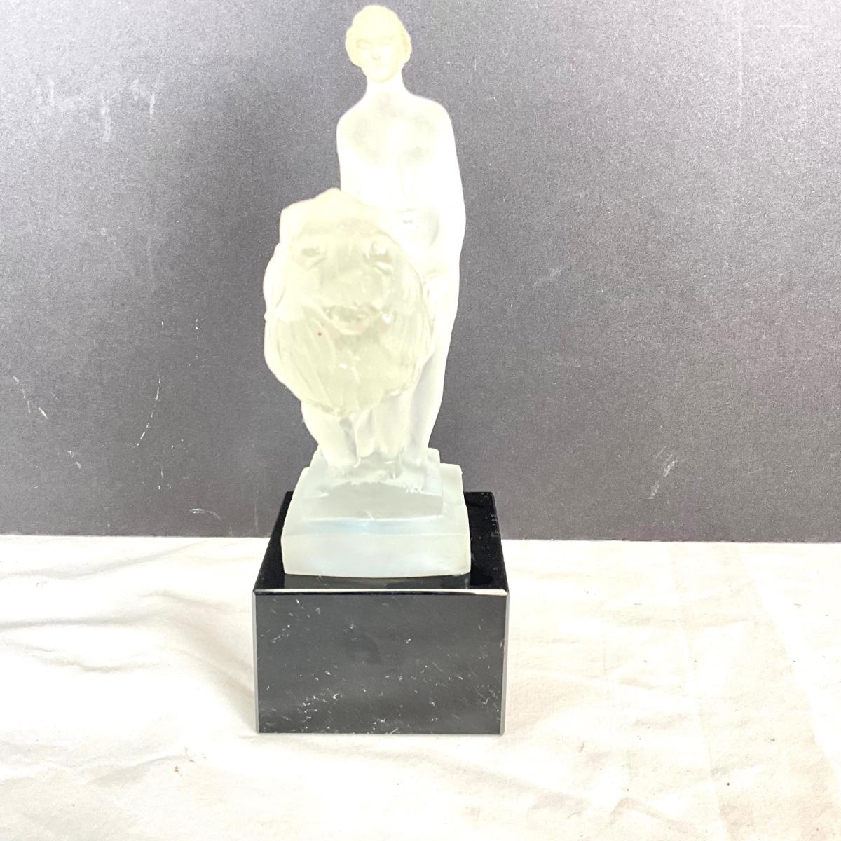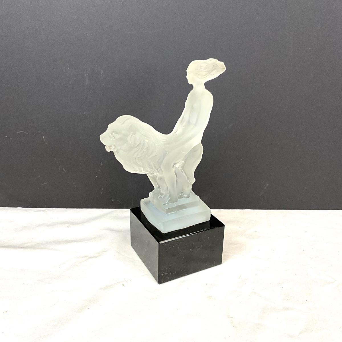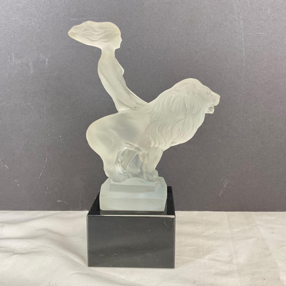 365 Vintage Art Deco Frosted Glass "Girl with Lion" Figurine
