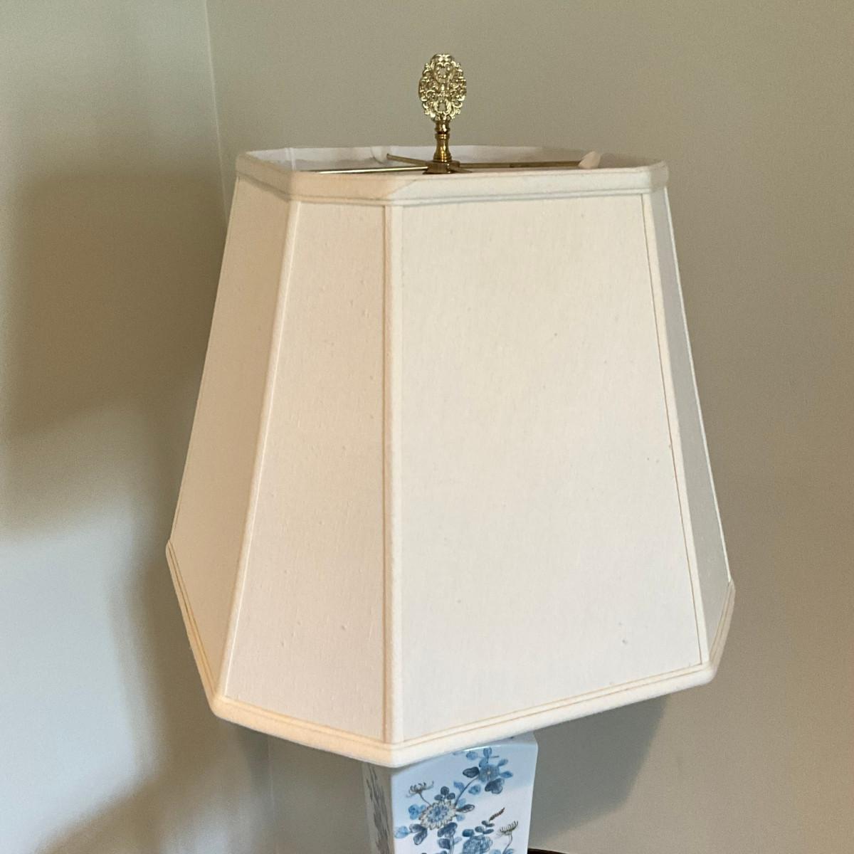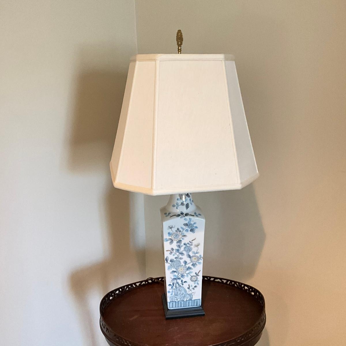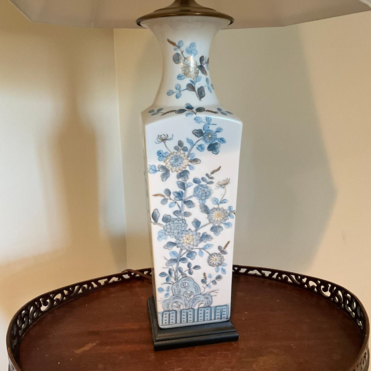 366 Vintage Blue & White Floral Porcelain Lamp With Shade