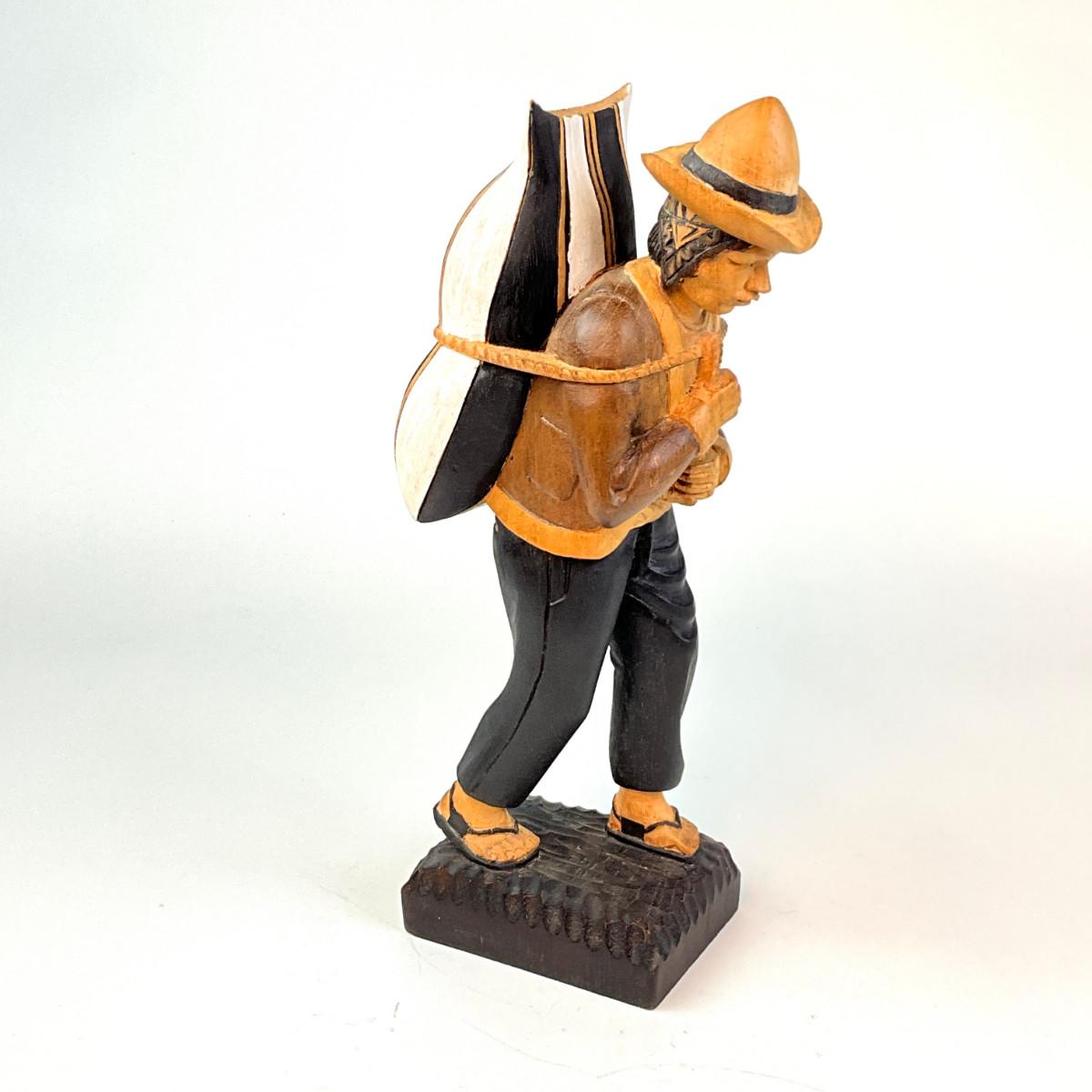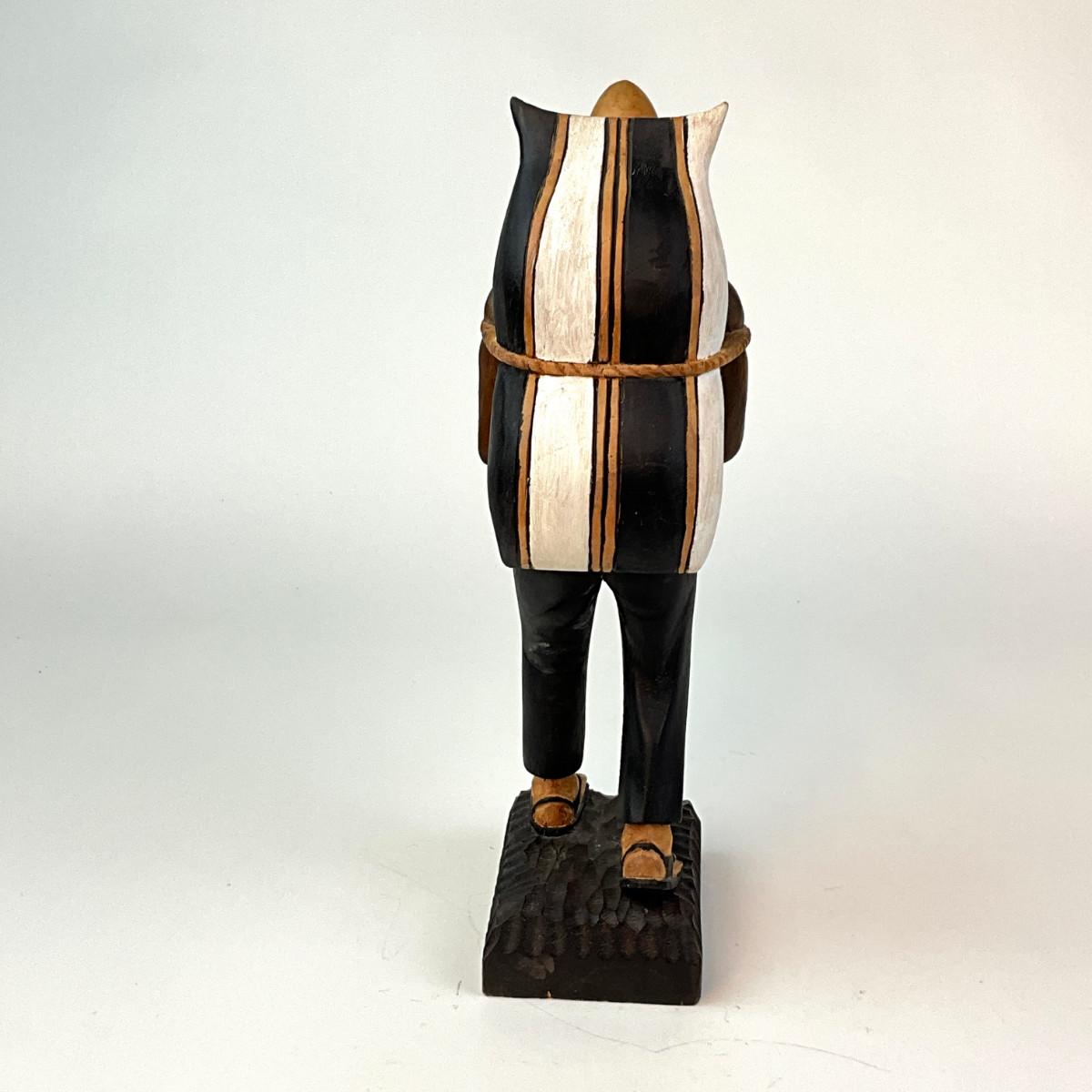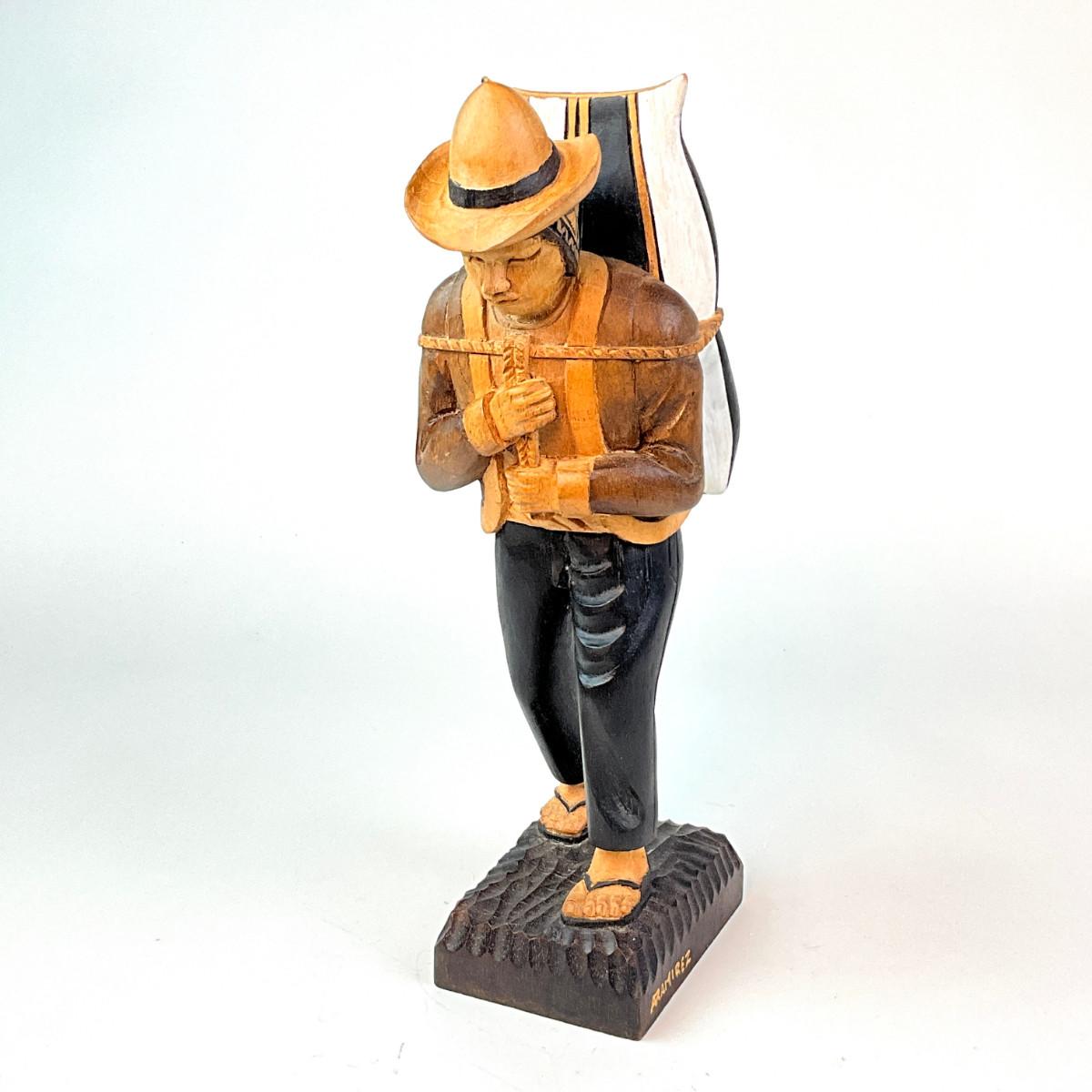 367 Hand-Carved Wooden Sculpture Of Man Carrying Bag