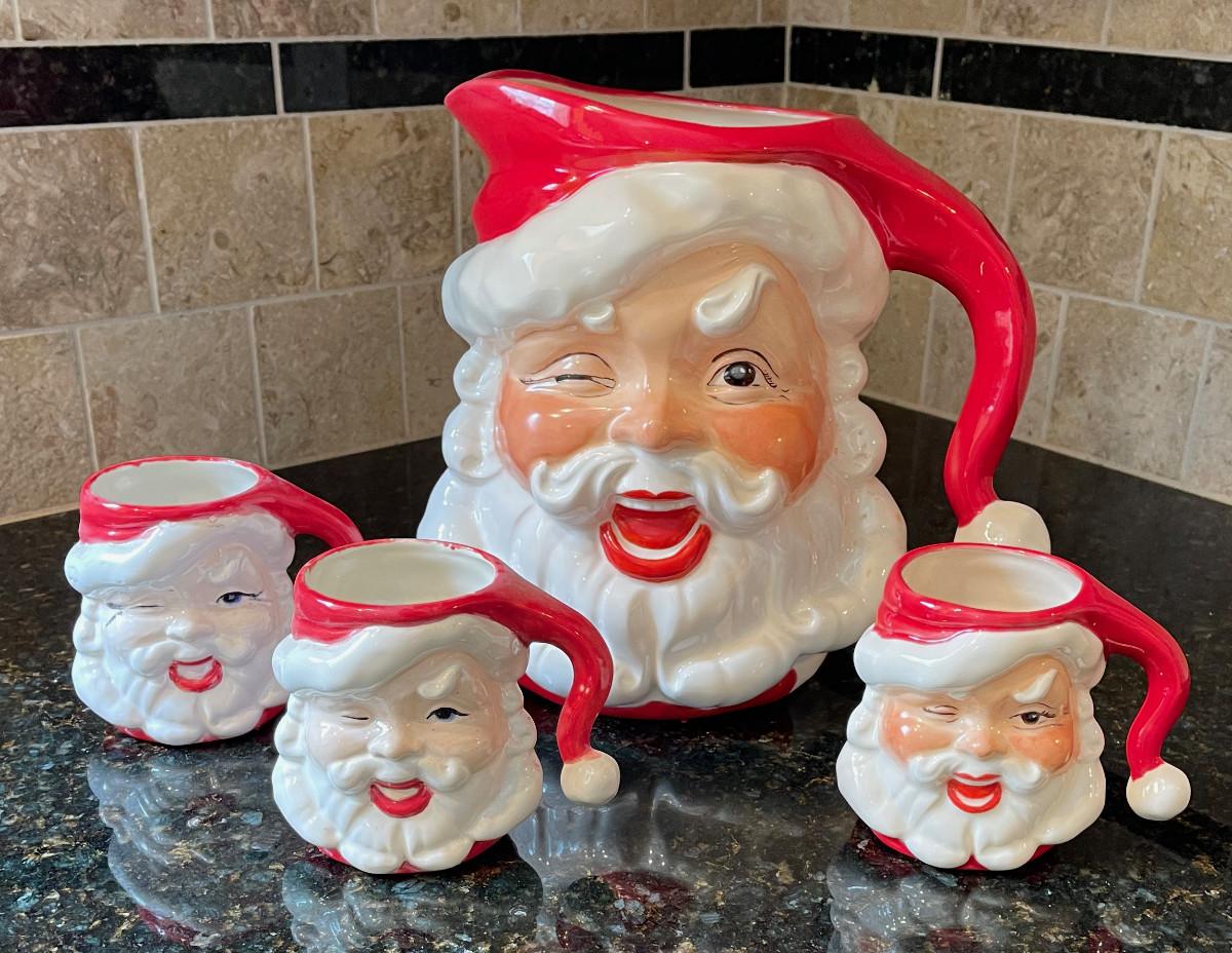 #367 Ho Ho Ho Santa's Pitcher and 3 Mugs