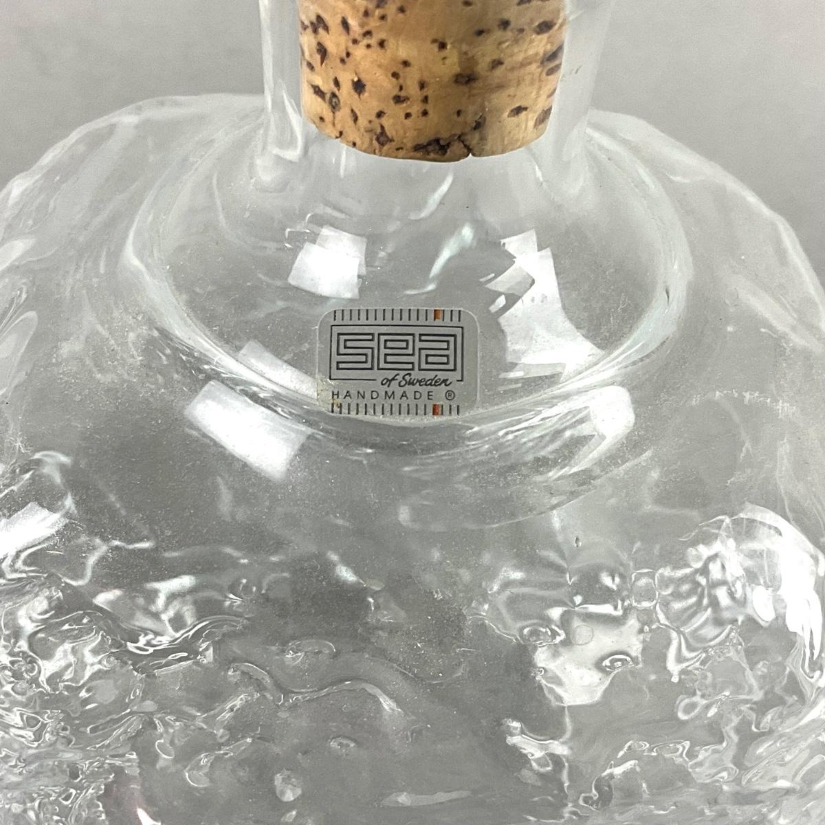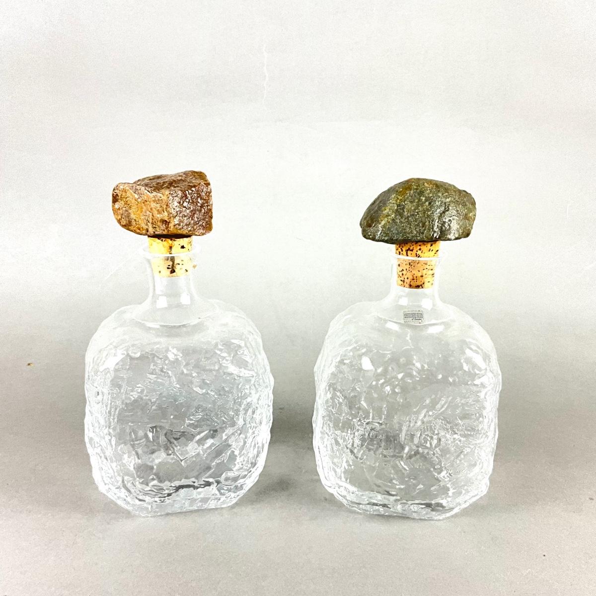 367 Pair of Sea of Sweden Hand Blown Glass Decanters with Rock Stoppers
