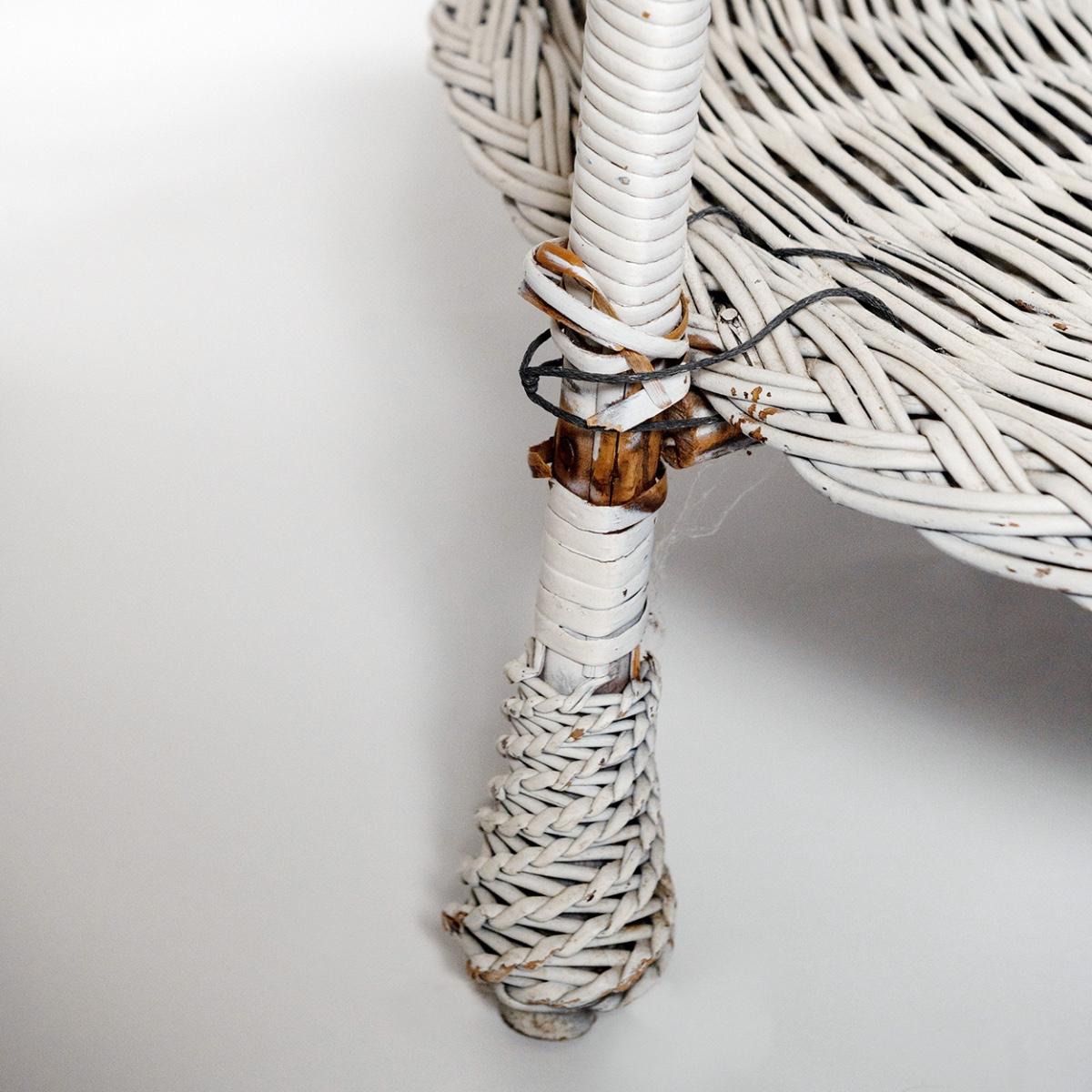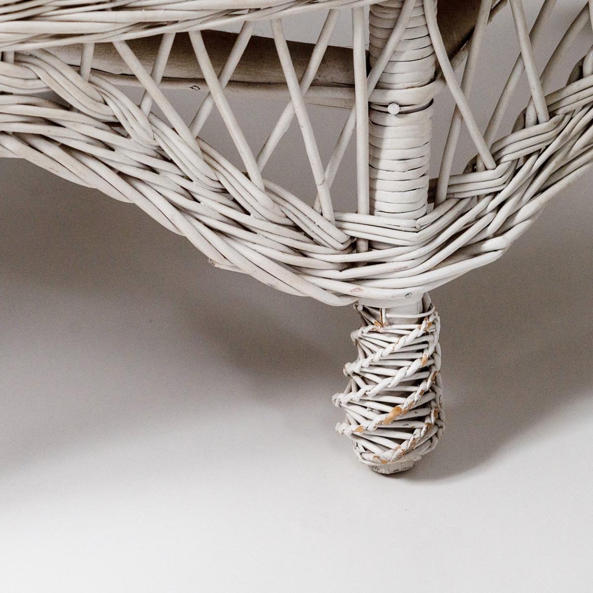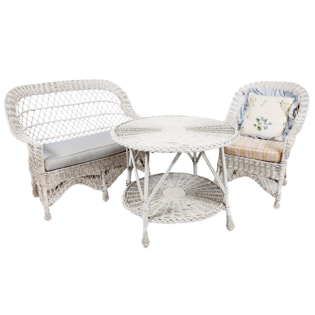 Victorian 3-Piece Wicker Set. Some stains on cushions & damage to wicker due to its age.