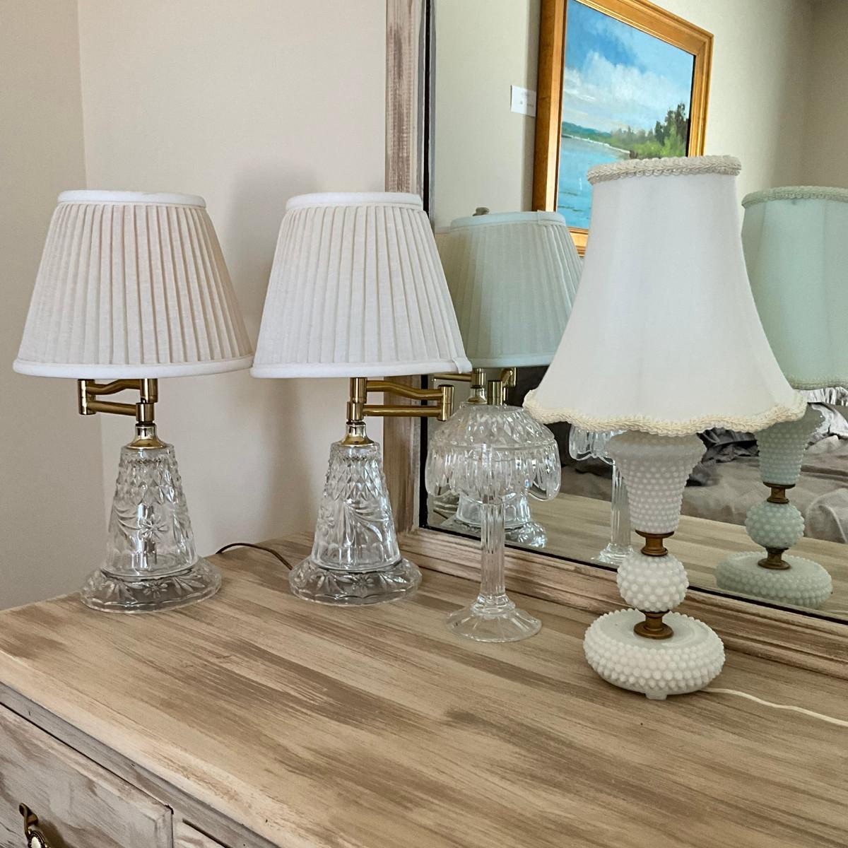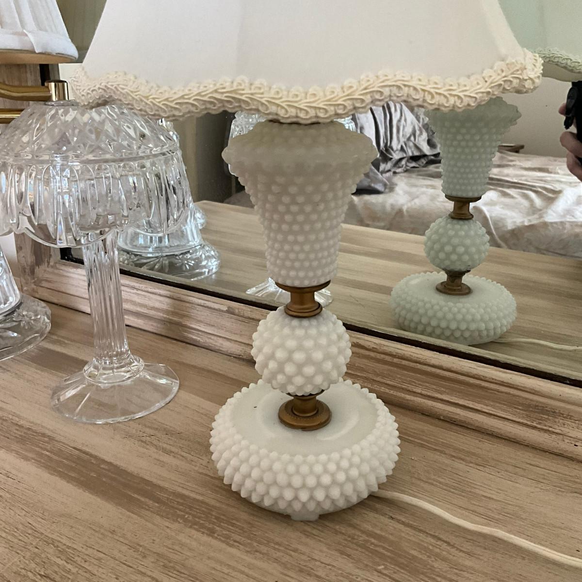 368 Vintage Milk Glass Lamp With Shade & Other Items Lot