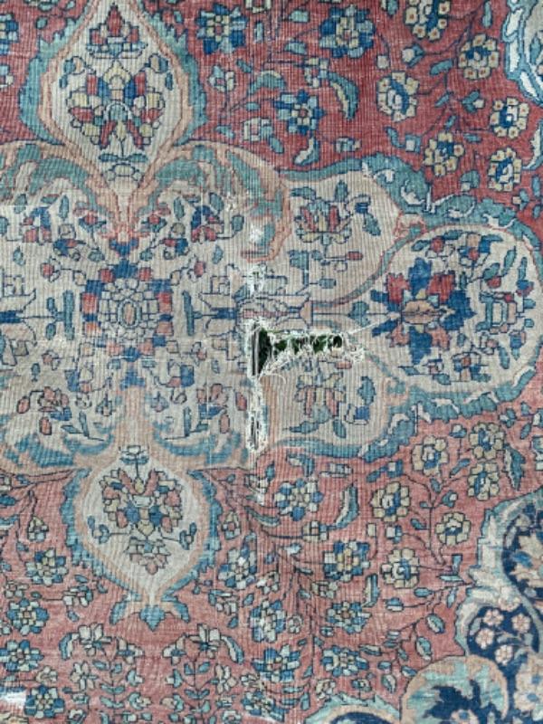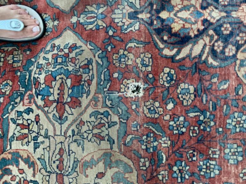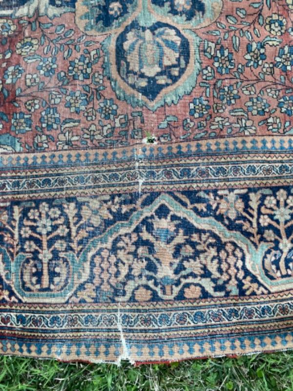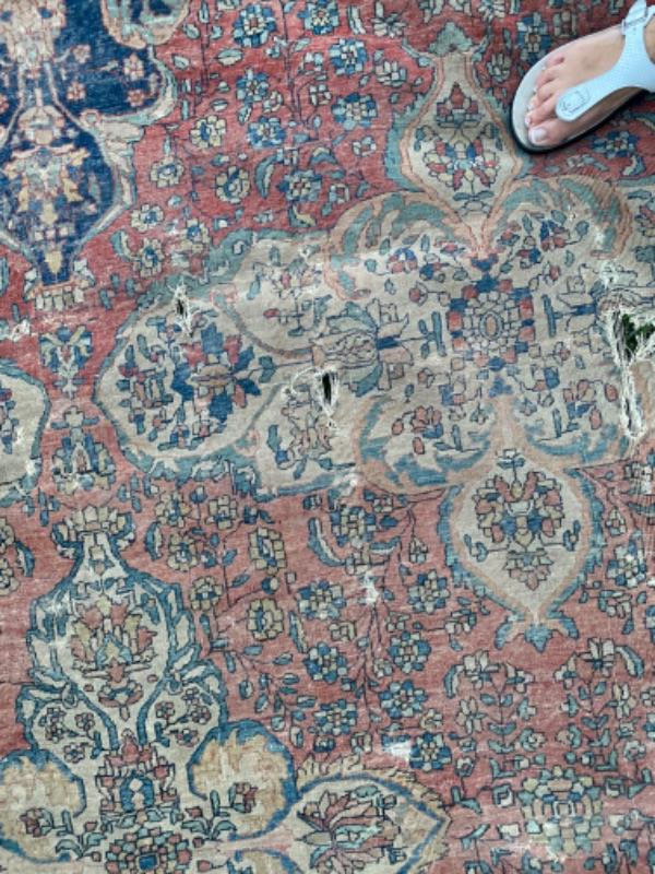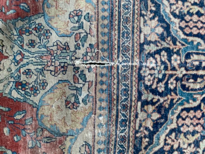 Antique Handwoven Oriental Rug has several tears and wear. (Please see pics)