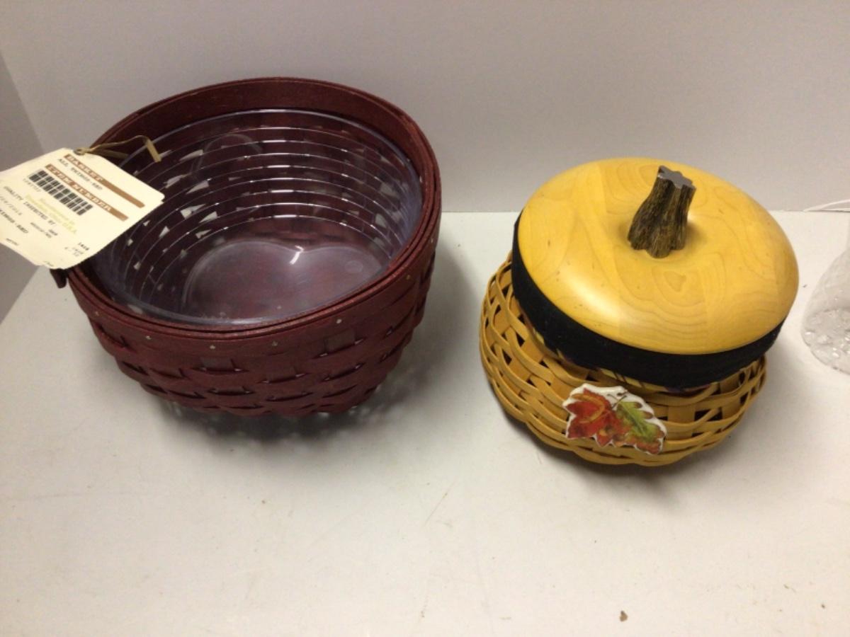 Two piece Longaberger Pumpkin basket and all things red with heavy bowl liner