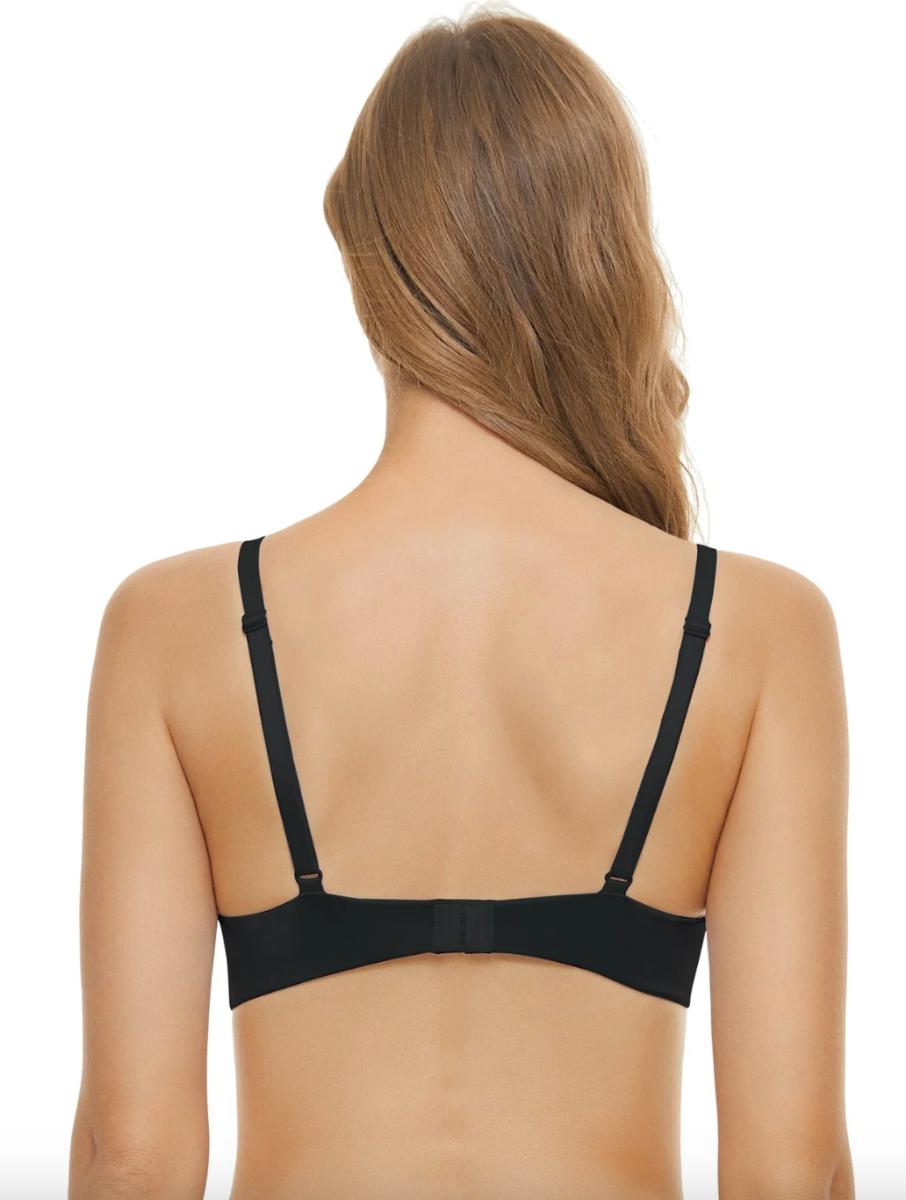 36C - Wingslove Lightly Padded Plunge Everyday Basic Underwire Black Bra
