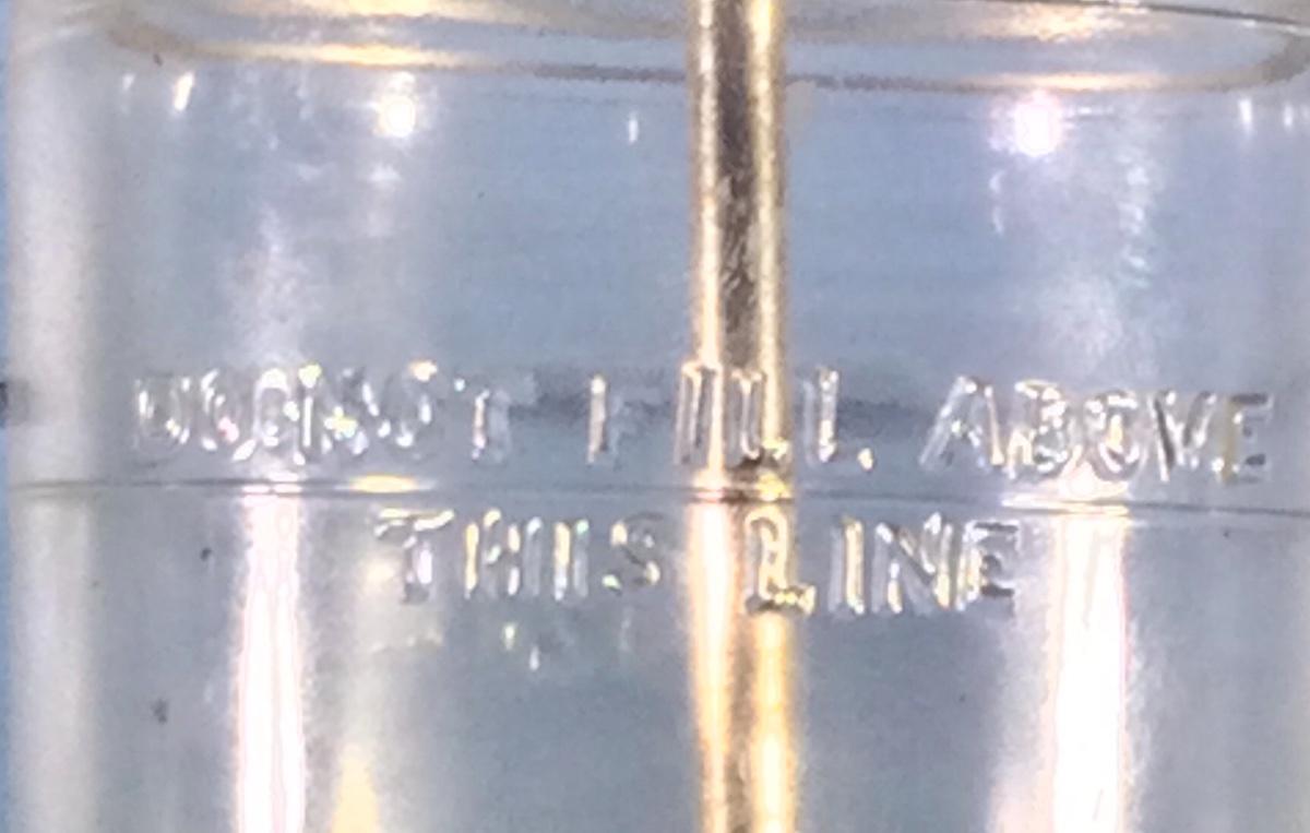 Very good condition, has liquid measures on one side, and do not fill past this line on other.