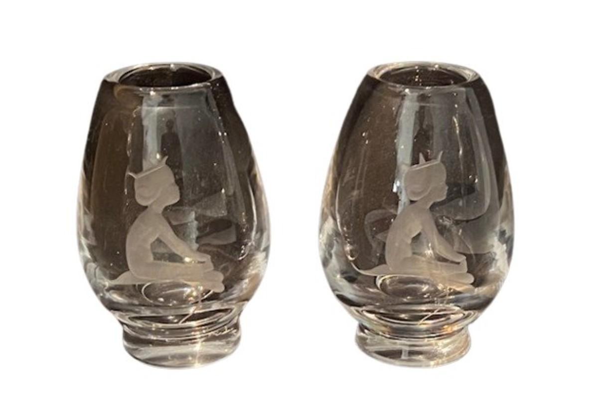 With etched princesses. No obvious chips or cracks. Measurement: 5"H (each). [KA]