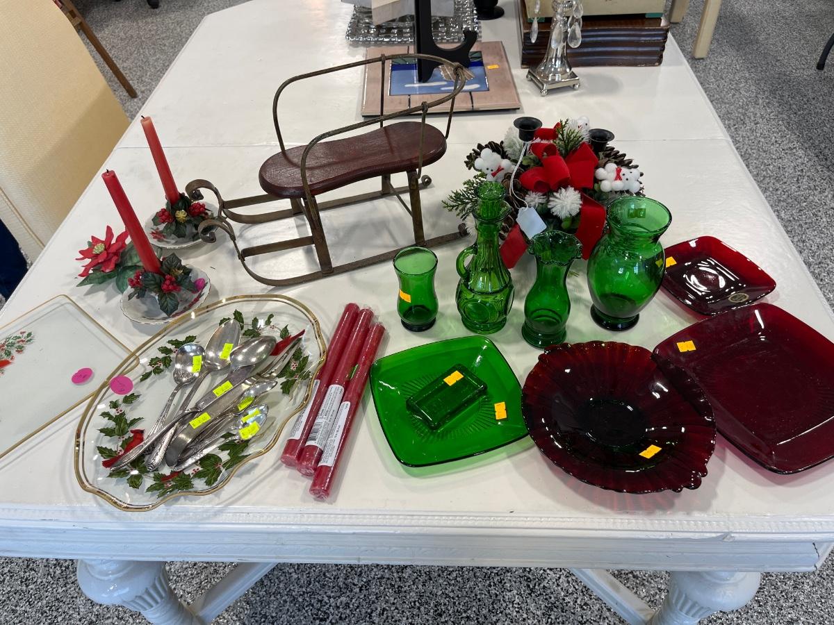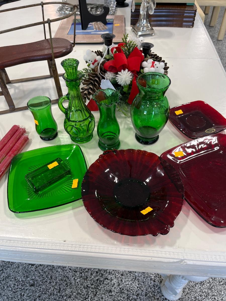 37- Anchorglass Ruby Red & Green, misc