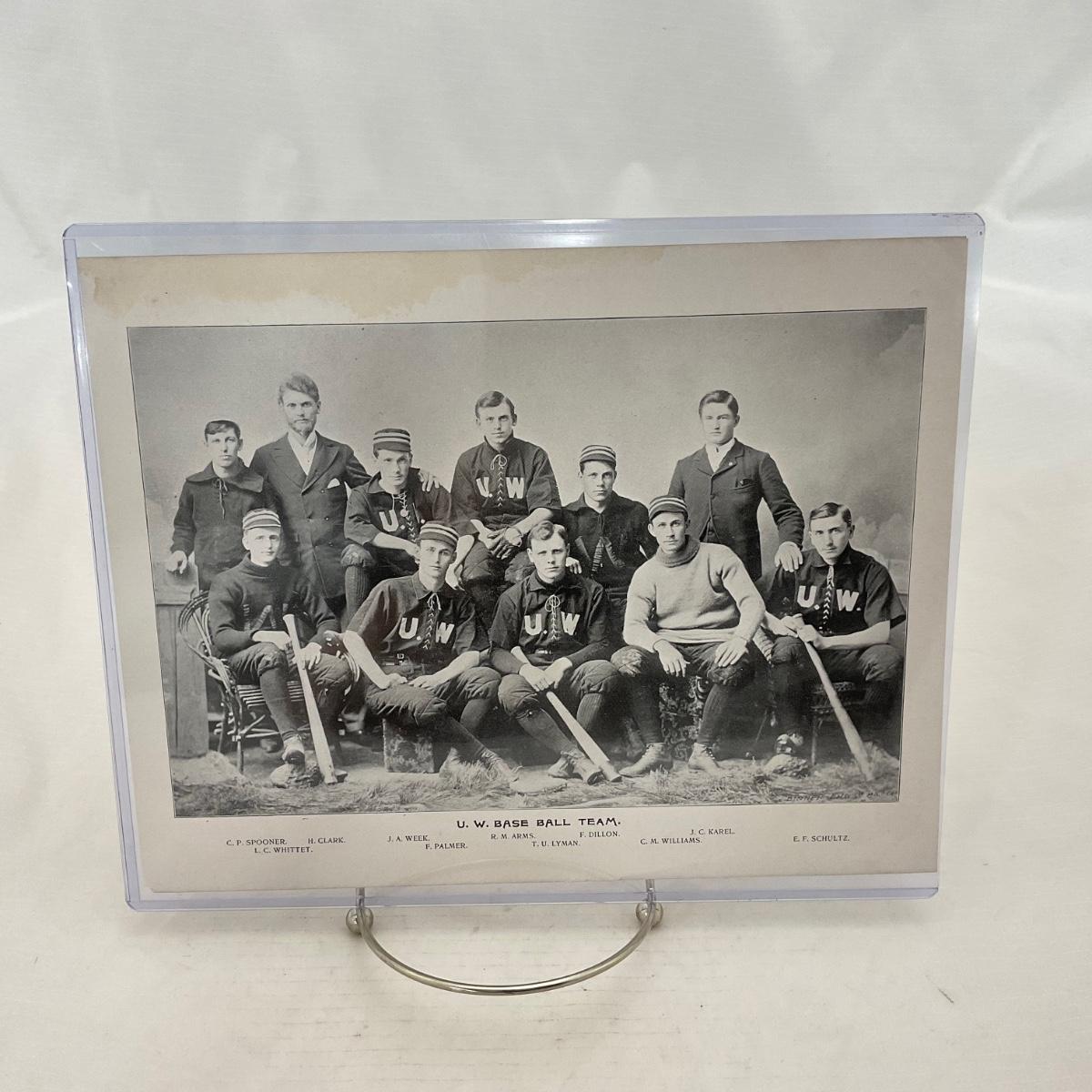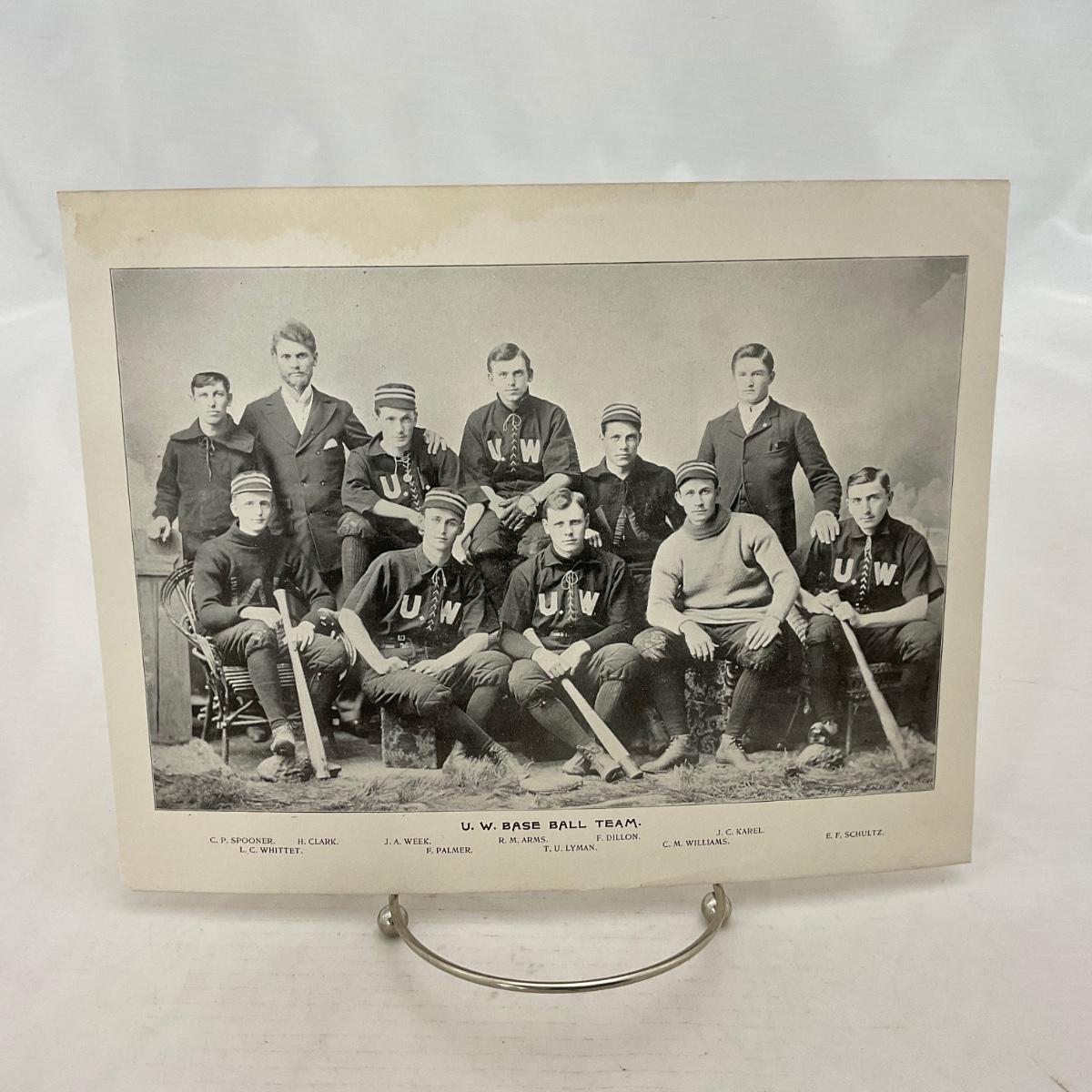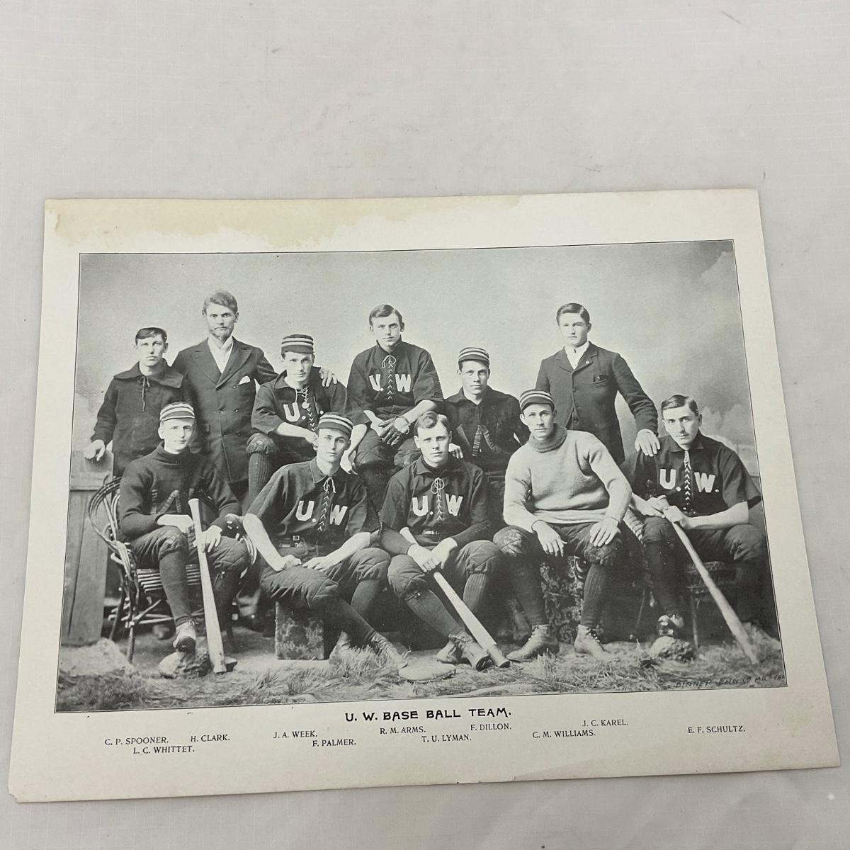 UW Baseball team photo 8x10 from a yearbook. Please see photos for details and condition. ::: Shipping is available on this lot. If you require shipping you must let us know at the close of the auction. We will coordinate with you after the item has been won. Shipping fees will include insurance up to or exceeding the value of all items being mailed. If you have any questions regarding this lot please contact the auctioneer either via this website, by direct email or by phone. PICK UP TIMES and other important information can be found in the TERMS and DESCRIPTION of the auction. Please take a look for pertinent information. Thanks!