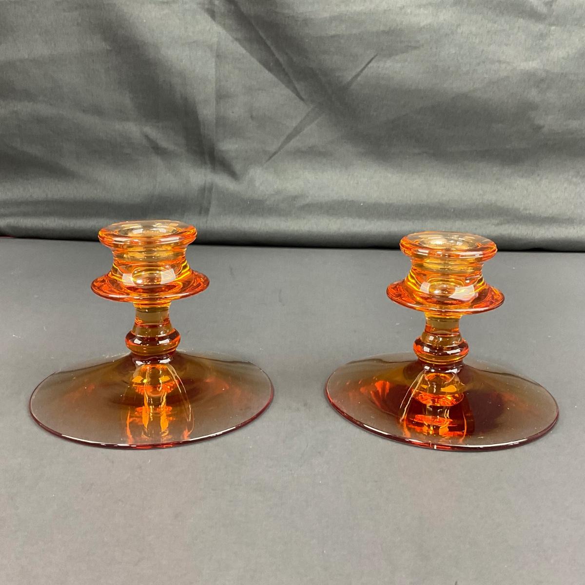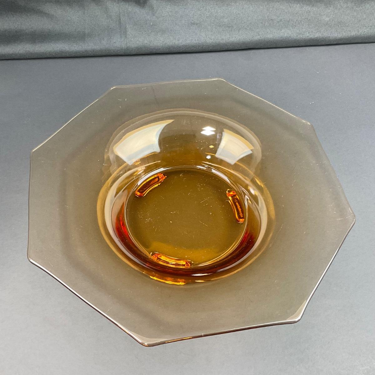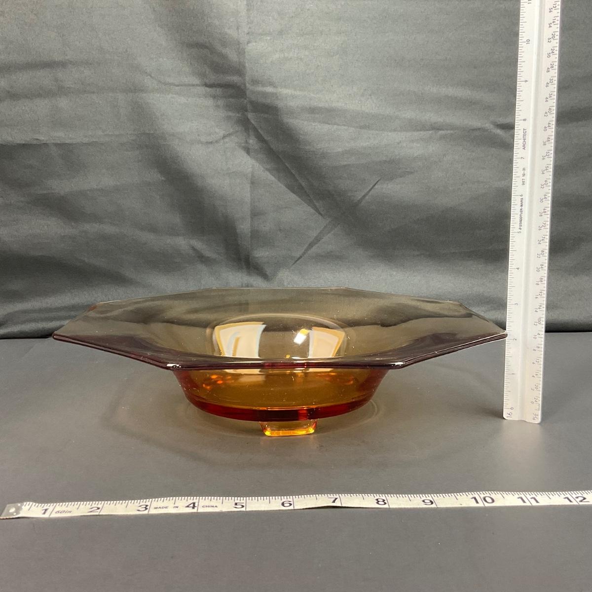 -37- FOSTORIA | Amber Glass Console Bowl & Candlestick Holders