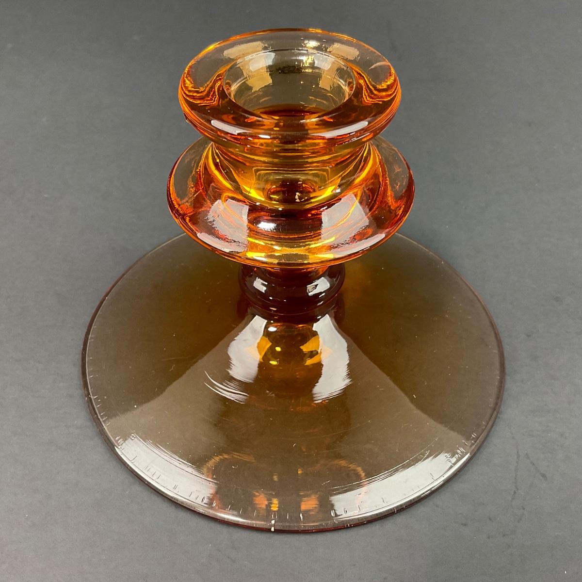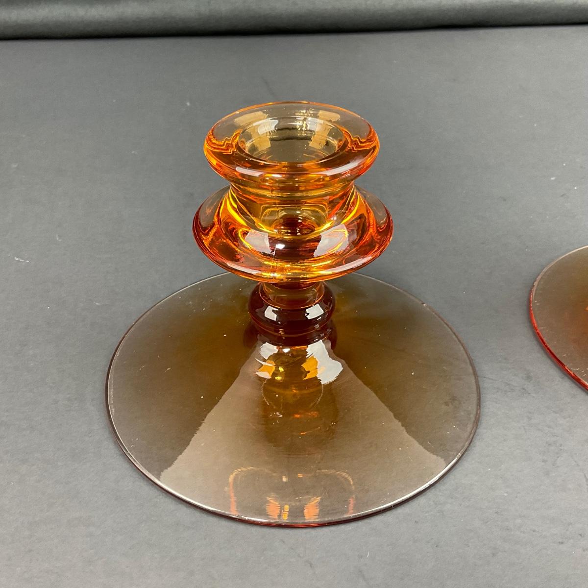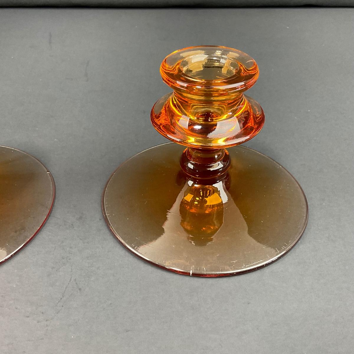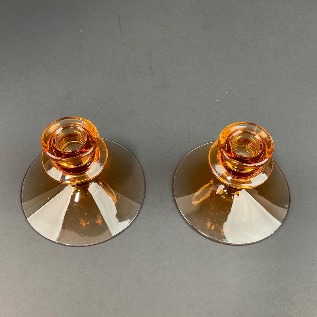-37- FOSTORIA | Amber Glass Console Bowl & Candlestick Holders
