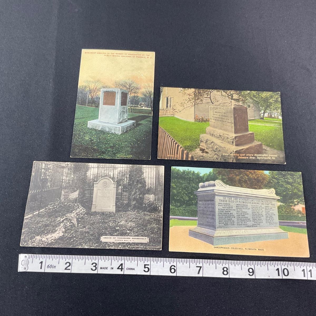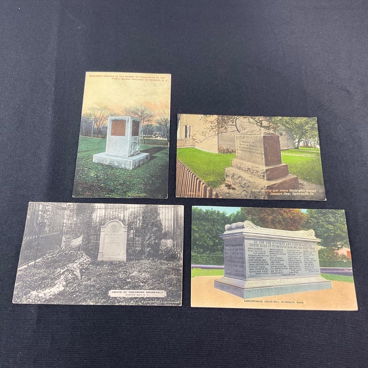 Assortment of four vintage monument postcards. Please see photos for details and condition. Any condition statement is given as a courtesy to a client, is an opinion, and should not be treated as a statement of fact. Reference to condition written, oral or within a condition report shall not be regarded as a full account of condition and may not include all defects, alterations, or restorations. Absence of a condition report does not imply a lot is flawless or lacking imperfections or damage. Katherine’s Auction & Appraisal Service shall have no responsibility for any error or omission. Returns shall not be accepted on the basis of condition. ::: Shipping is available on this lot. If you require shipping you must let us know at the close of the auction. We will coordinate with you after the item has been won. Shipping fees will include insurance up to or exceeding the value of all items being mailed. If you have any questions regarding this lot please contact the auctioneer either via this website, by direct email or by phone. PICK UP TIMES and other important information can be found in the TERMS and DESCRIPTION of the auction. Please take a look for pertinent information. Thanks!