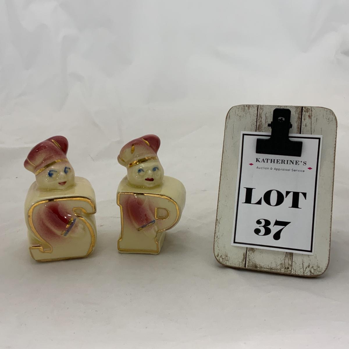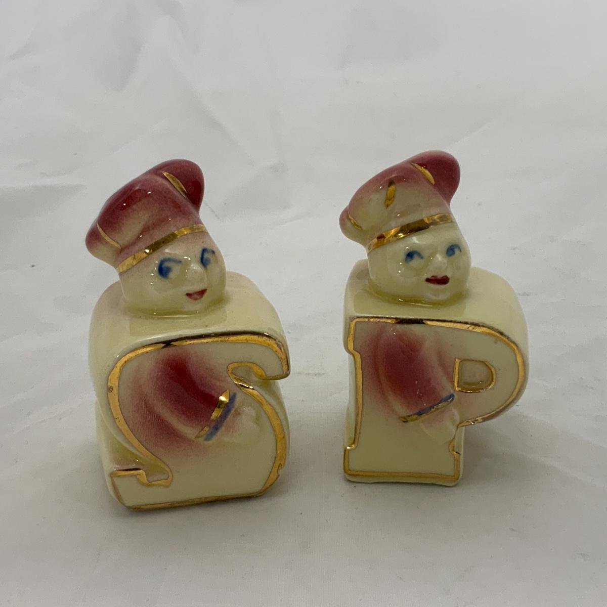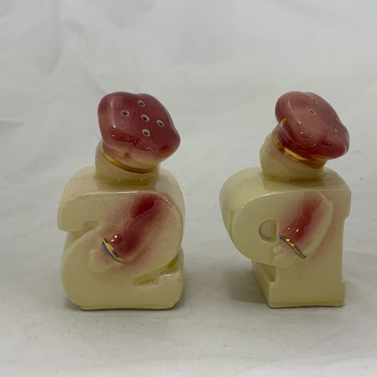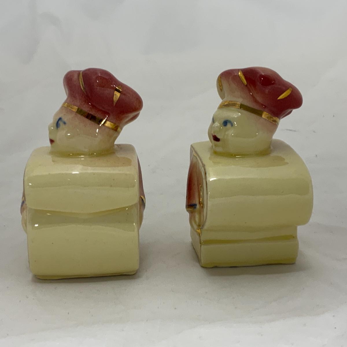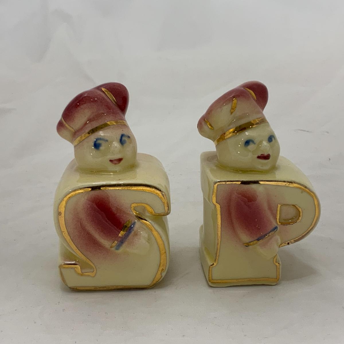 -37- SHAWNEE | 1940s Little Chef | Salt and Pepper Shakers | Gold Accent