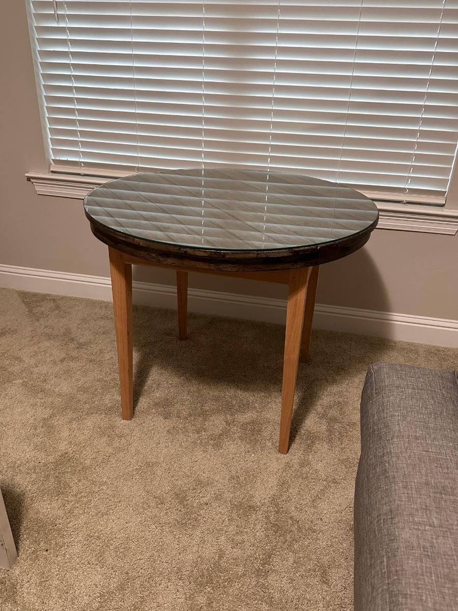 An be used as a craft, kitchen or game table ~ no chairs ~ 30” H ~ has custom glass