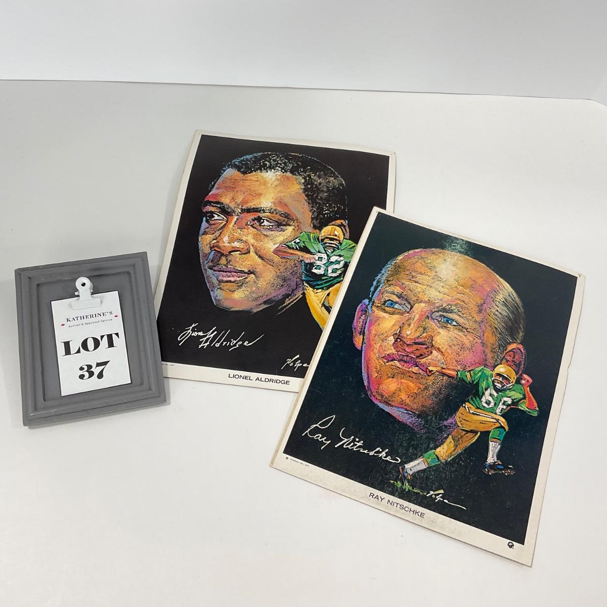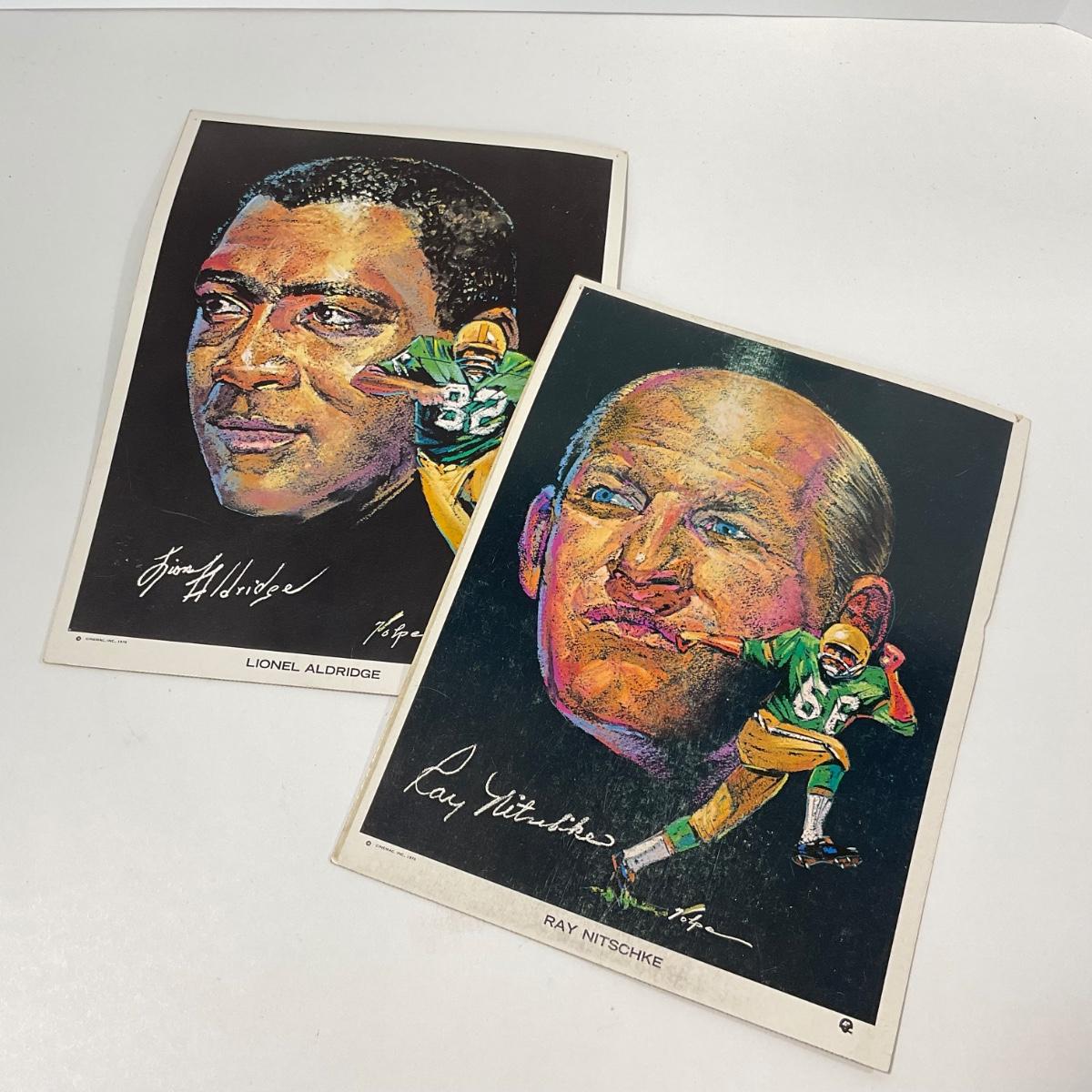 Two large photograph cards of Green Bay Packers Ray Nitschke and Lionel Aldridge. 7.5 inches by 10 inches. Please see photos for details and condition. ::: Shipping is available on this lot. If you require shipping you must let us know at the close of the auction. We will coordinate with you after the item has been won. Shipping fees will include insurance up to or exceeding the value of all items being mailed. If you have any questions regarding this lot please contact the auctioneer either via this website, by direct email or by phone. PICK UP TIMES and other important information can be found in the TERMS and DESCRIPTION of the auction. Please take a look for pertinent information. Thanks!
