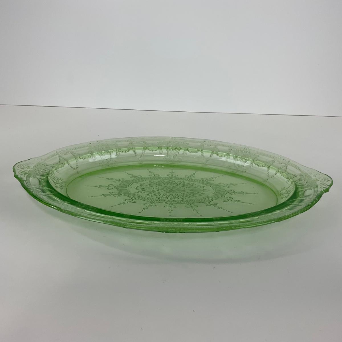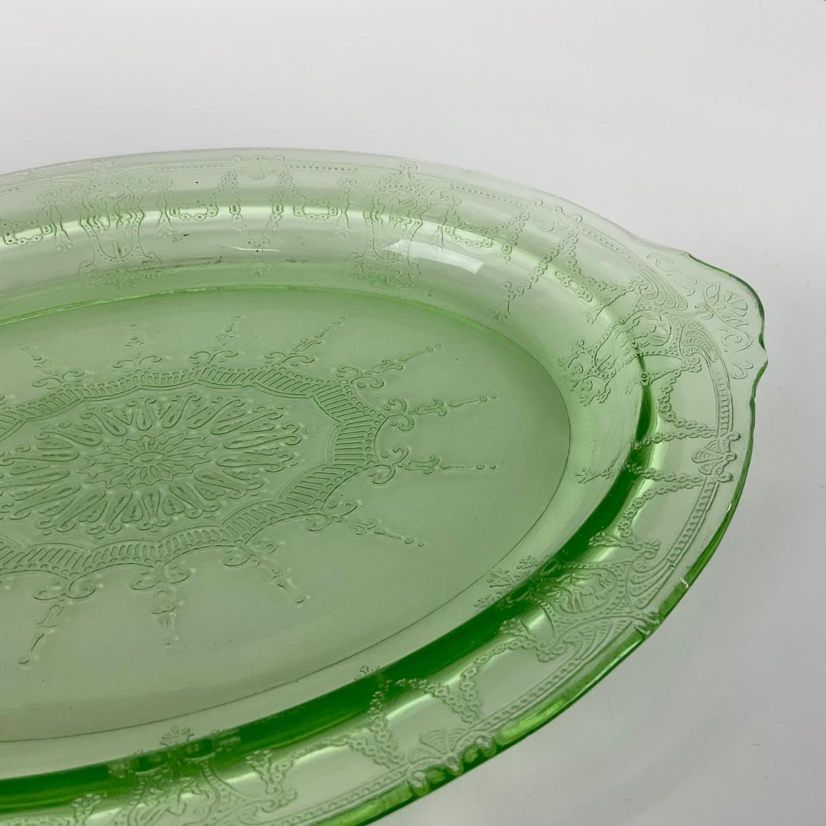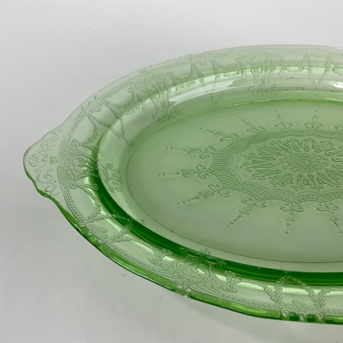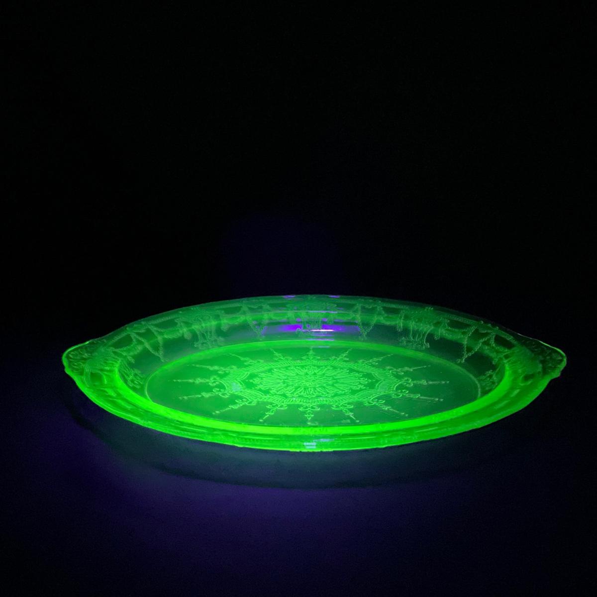 -37- URANIUM | Cameo “Ballerina” Hocking Glass Co. | Green Depression Platter