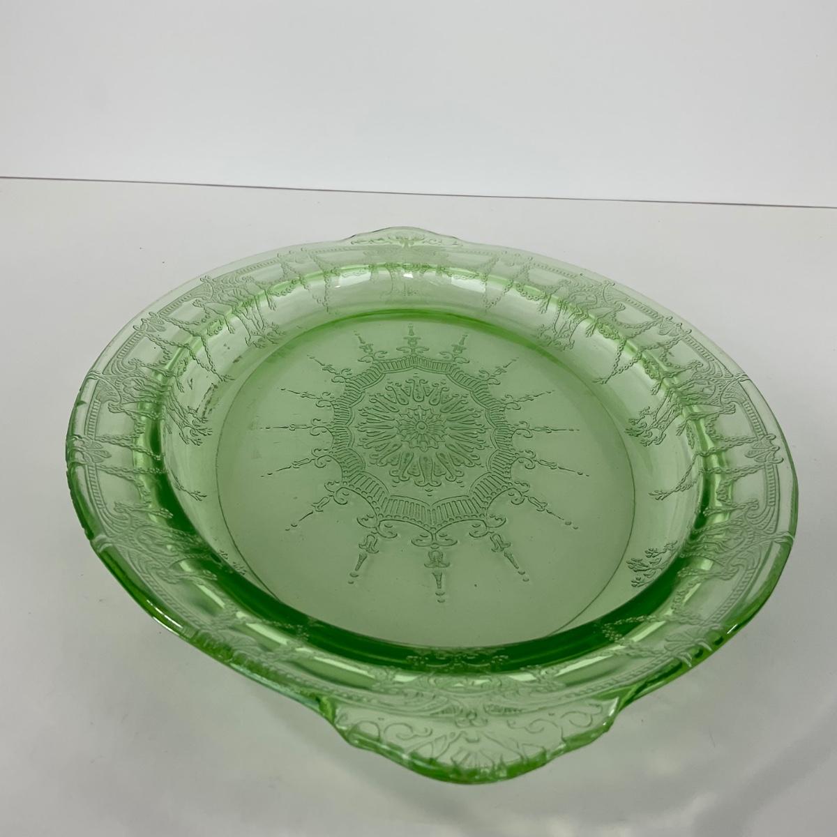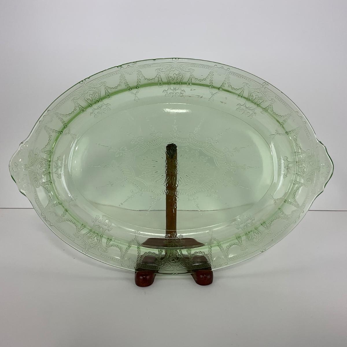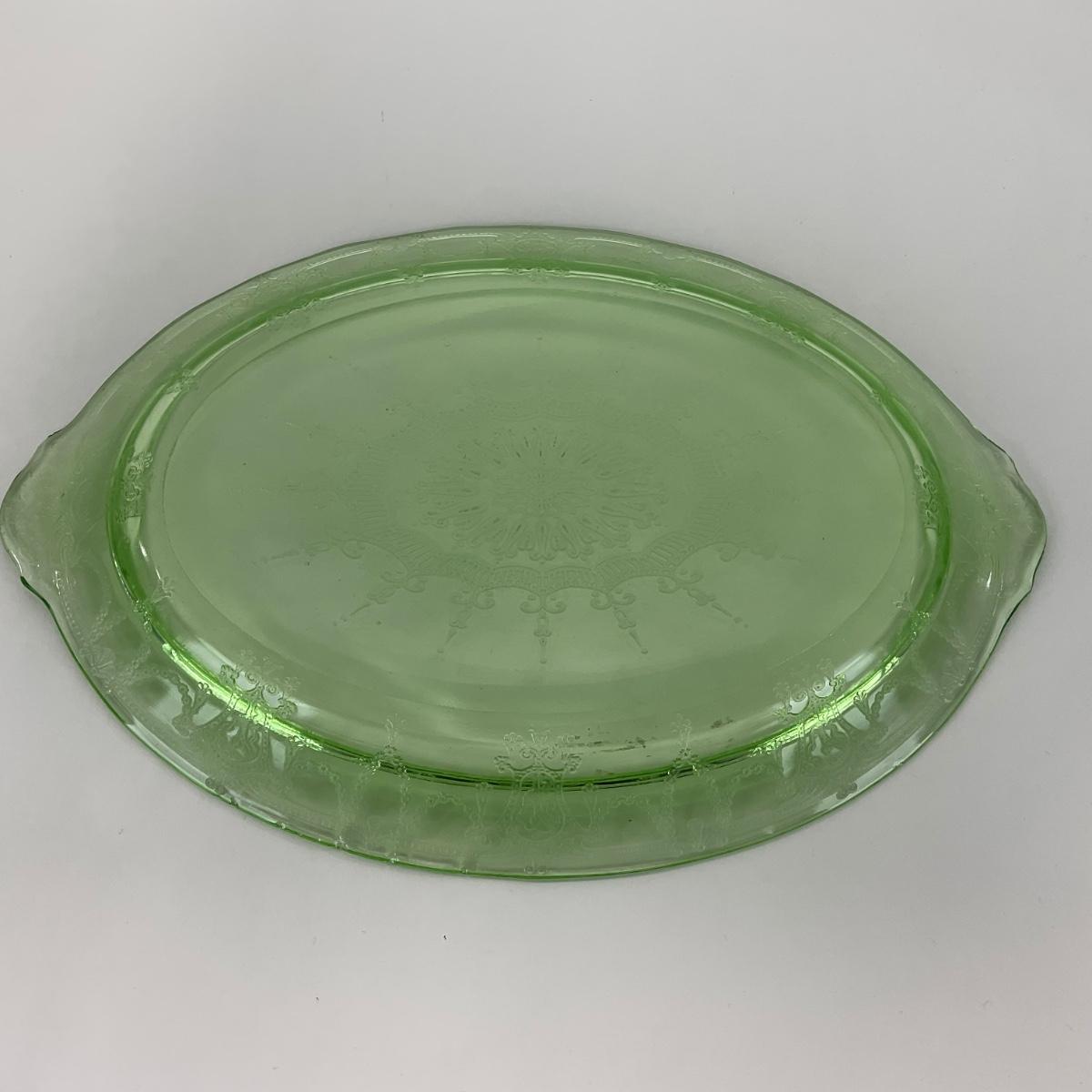 -37- URANIUM | Cameo “Ballerina” Hocking Glass Co. | Green Depression Platter