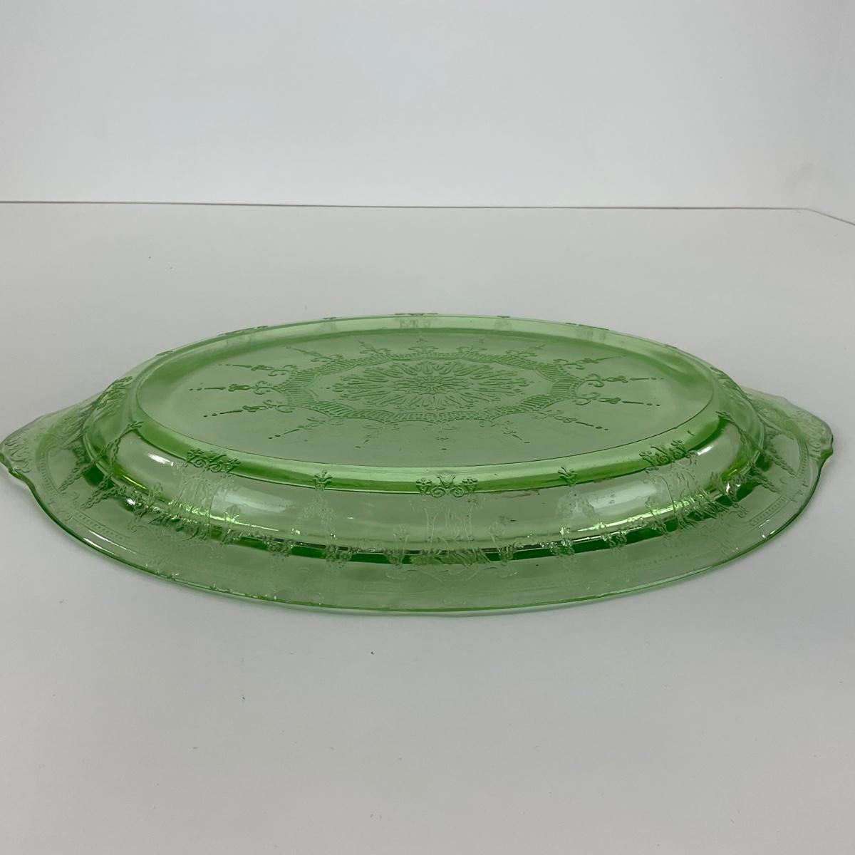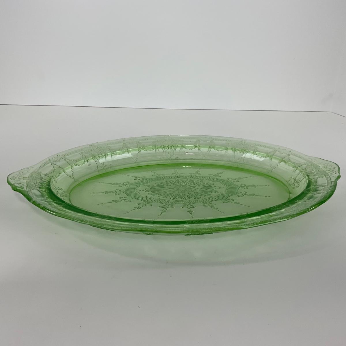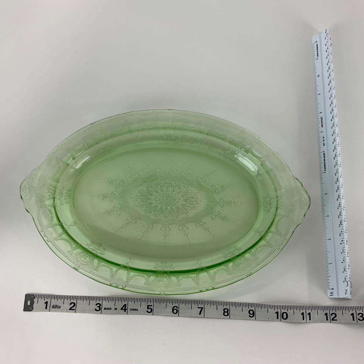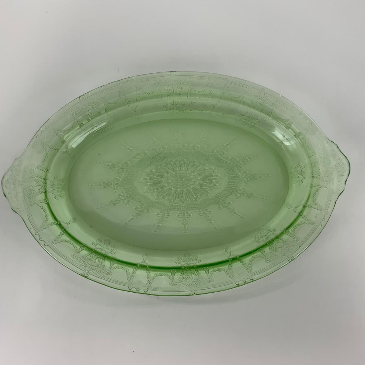 -37- URANIUM | Cameo “Ballerina” Hocking Glass Co. | Green Depression Platter