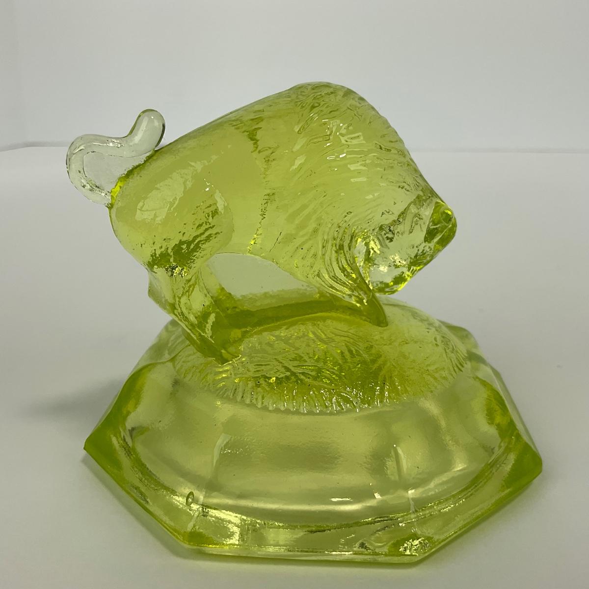 -37- URANIUM | Vintage Glass Buffalo Paperweight