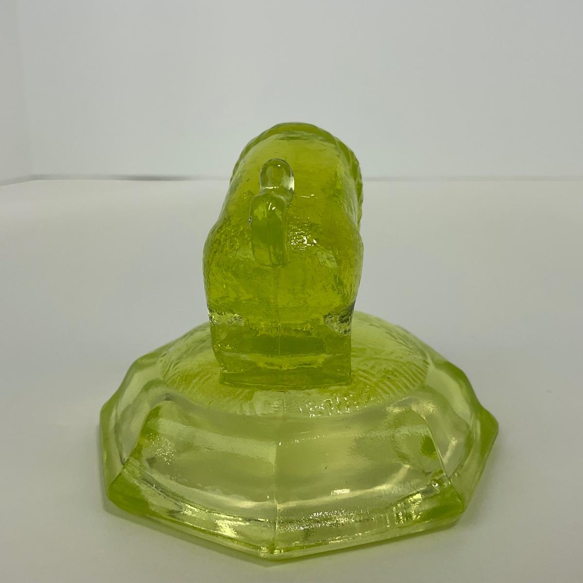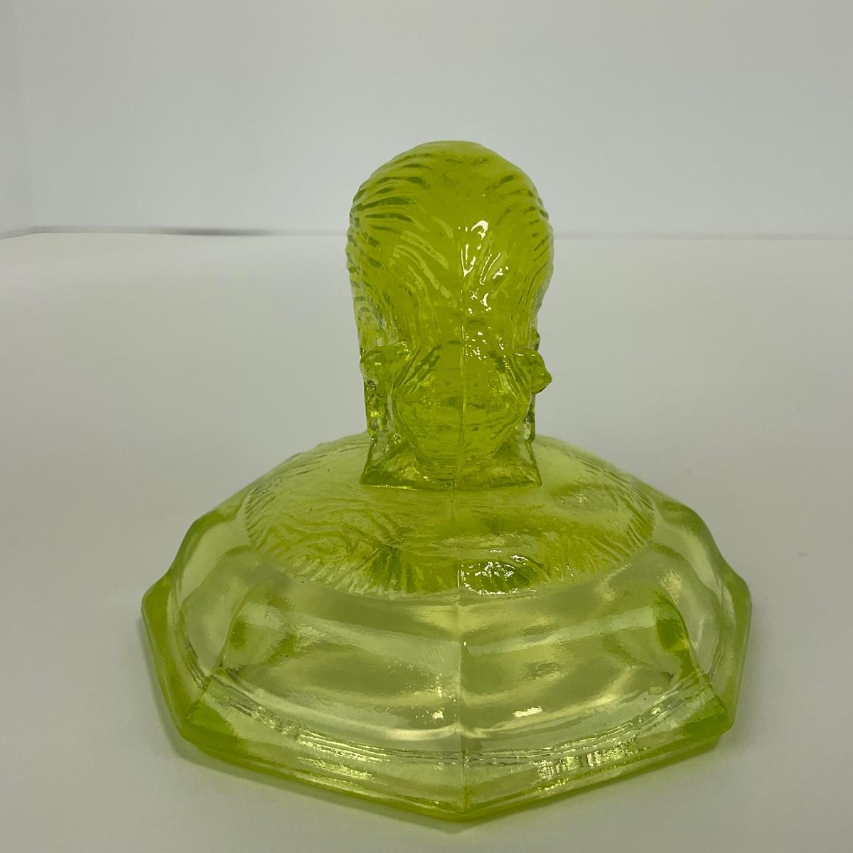 One vintage Uranium glass Buffalo Paperweight. This piece has no damage, and appears to be in great shape with no visable chips, cracks, or broken pieces. Please see photos for details and condition. Any condition statement is given as a courtesy to a client, is an opinion, and should not be treated as a statement of fact. Reference to condition written, oral or within a condition report shall not be regarded as a full account of condition and may not include all defects, alterations, or restorations. Absence of a condition report does not imply a lot is flawless or lacking imperfections or damage. Katherine’s Auction & Appraisal Service shall have no responsibility for any error or omission. Returns shall not be accepted on the basis of condition. ::: Shipping is available on this lot. If you require shipping you must let us know at the close of the auction. We will coordinate with you after the item has been won. Shipping fees will include insurance up to or exceeding the value of all items being mailed. If you have any questions regarding this lot please contact the auctioneer either via this website, by direct email or by phone. PICK UP TIMES and other important information can be found in the TERMS and DESCRIPTION of the auction. Please take a look for pertinent information. Thanks!