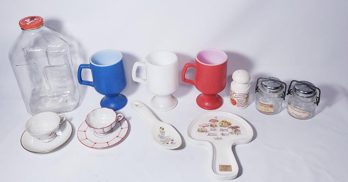 Variety of kitchen wares; mugs, avon, tea cups, and more!