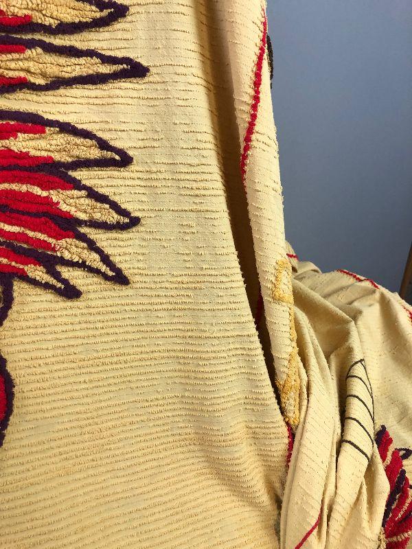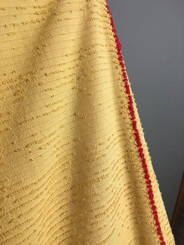 Awesome Design and very hard to come by! Fun for Western Theme Decor 66" X 102" Chanel is worn on both spreads. Some light staining on one. Yellow mustard color