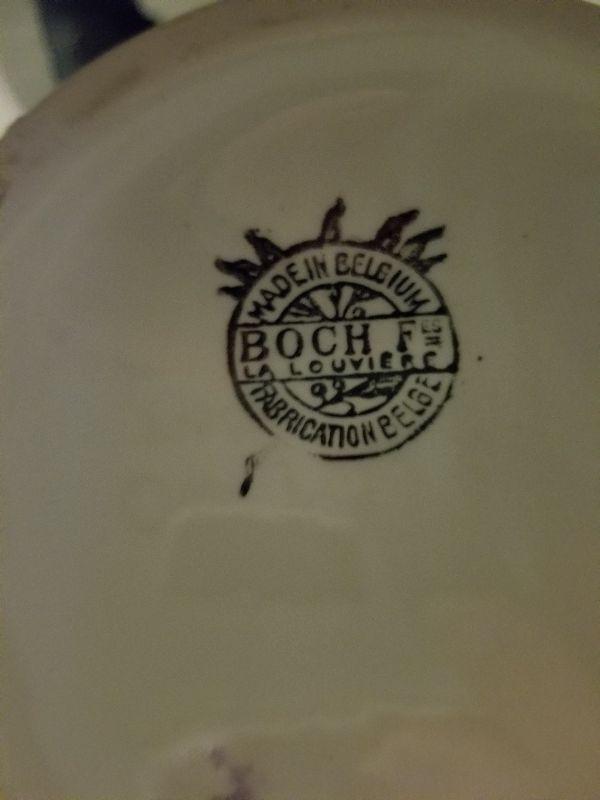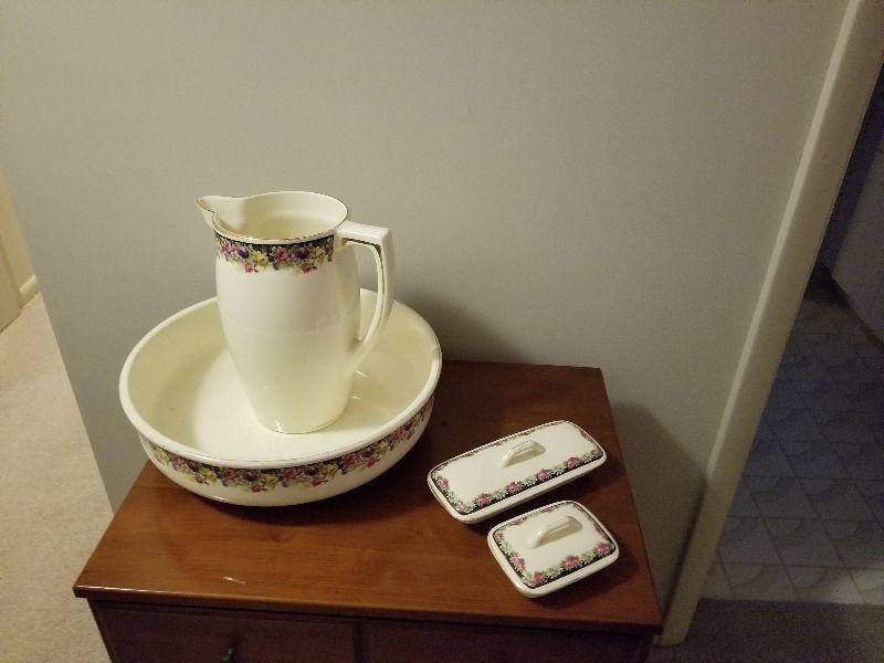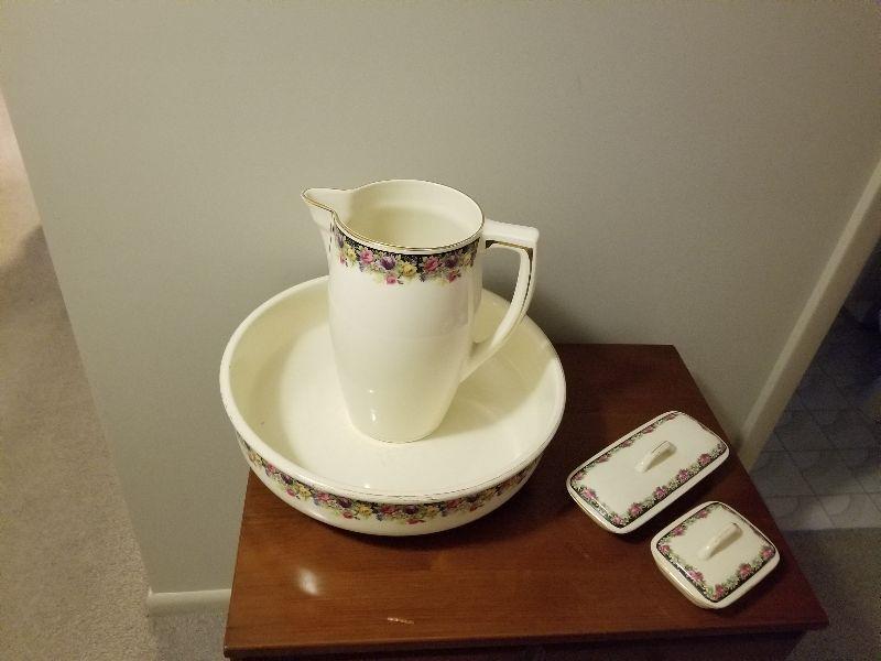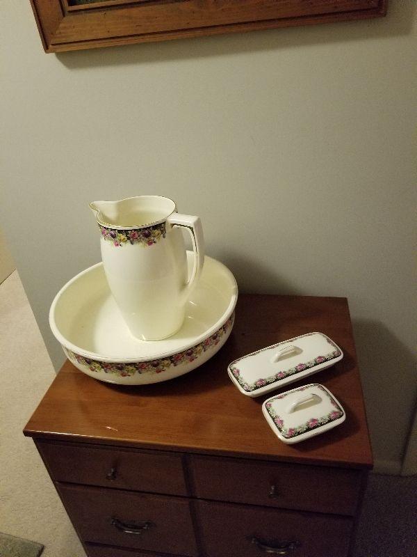Boch wash basin comes with razor dish and soap dish, both with lids. Maker's mark is on the bottom.
